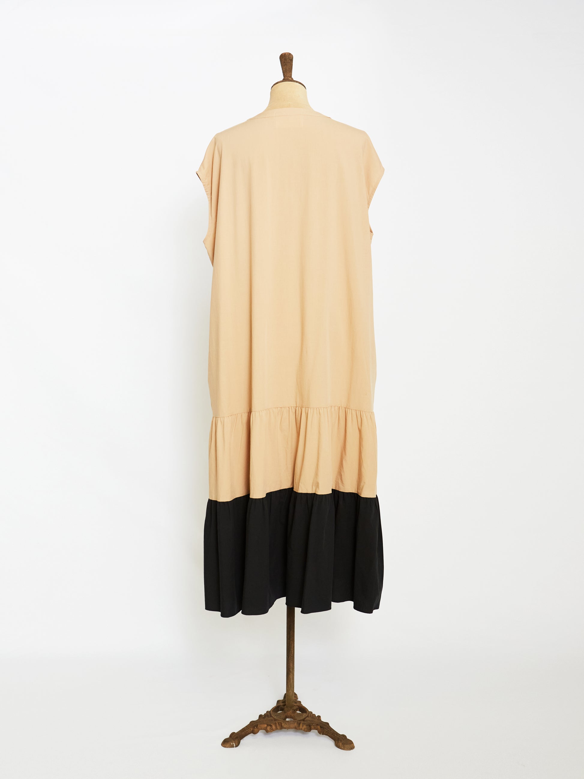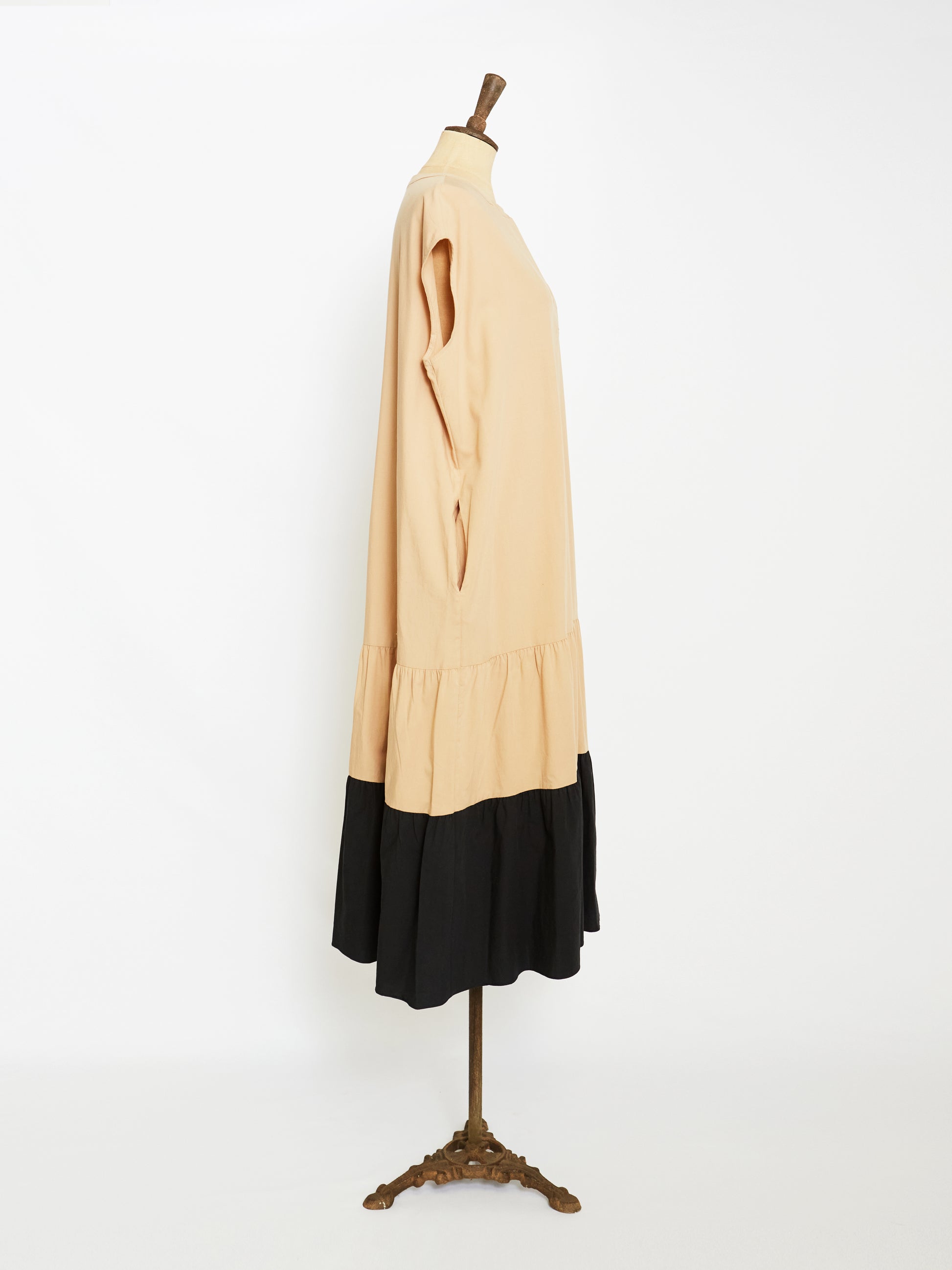 Crafted from pure cotton for a breathable finish in beige, this relaxed fit dress features a loose cut back for volume and cozy style without sleeves for a laid-back silhouette. The side seam pockets and color block detail elevate this style.