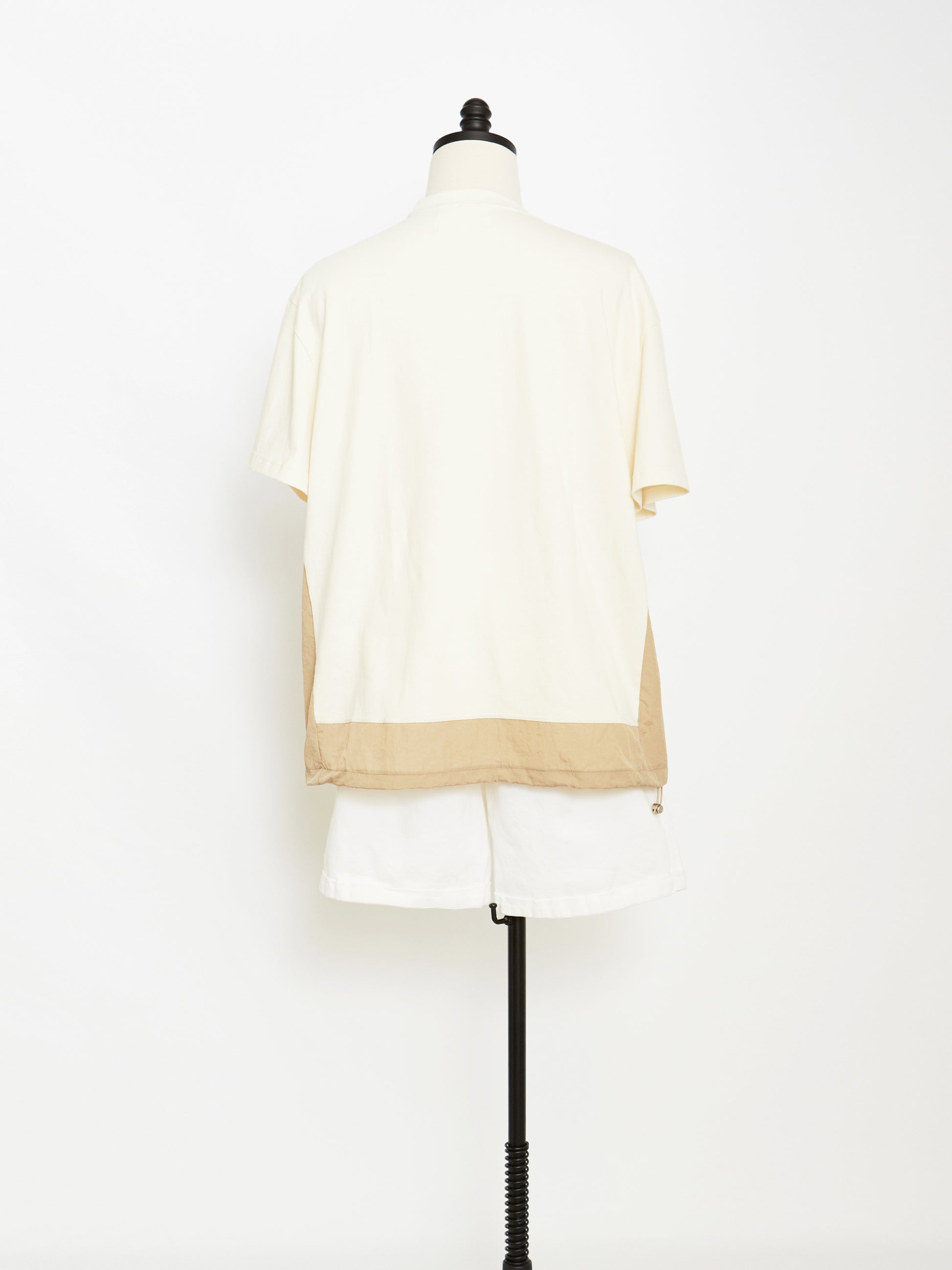 Crafted From Blend Cotton For An Edge Finish In Ivory, This Boxy Fit Top Features A Side Bottom String For Volume And Hipster Style For A Laid-Back Silhouette. The Front Pocket And Color Block Detail Elevate This Style.