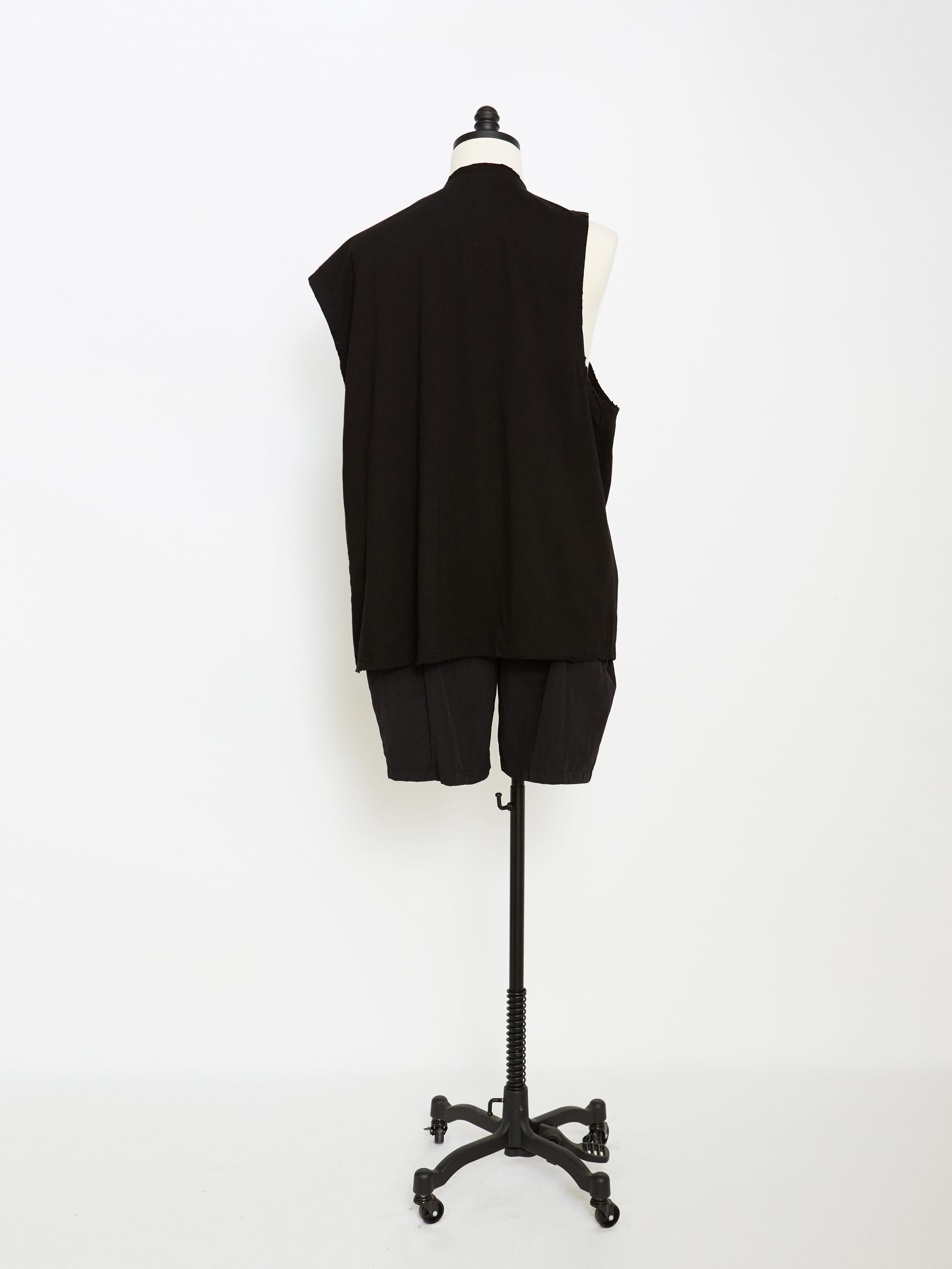 Crafted from pure cotton for an edge finish in black, this boxy fit unbalanced top features a different length sleeves for hipster style for a unique silhouette.