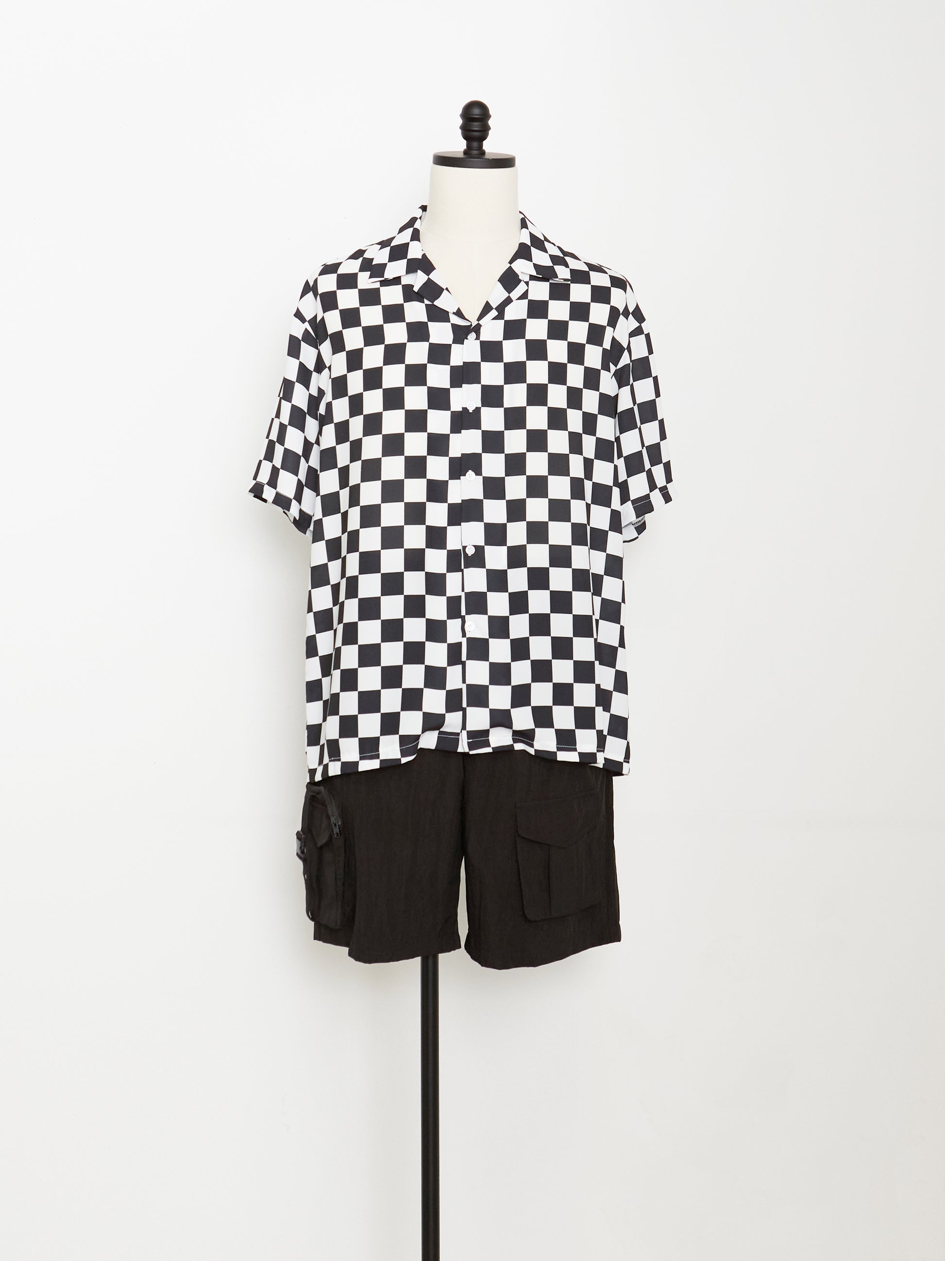 Crafted from light fabric for a breathable finish in checkerboard pattern, this standard fit summer shirt features camp collar for Antic Q. signature style and a laid-back silhouette.