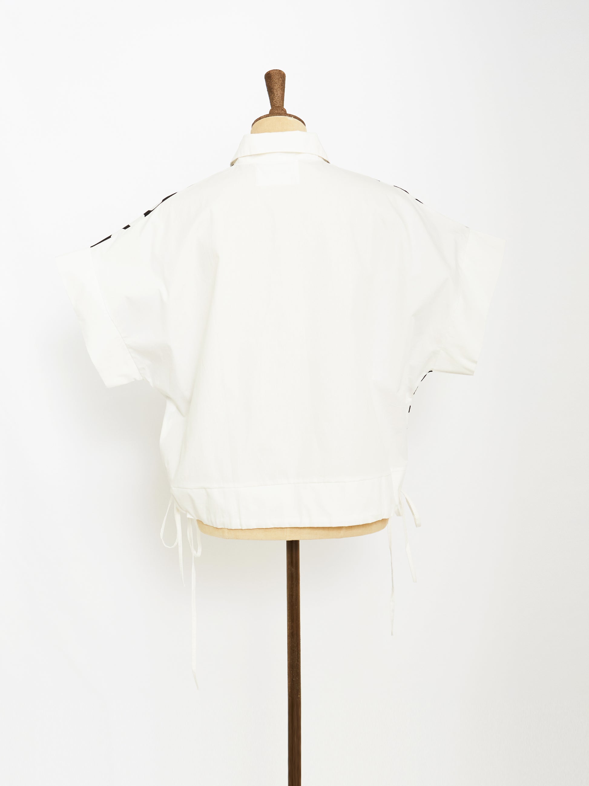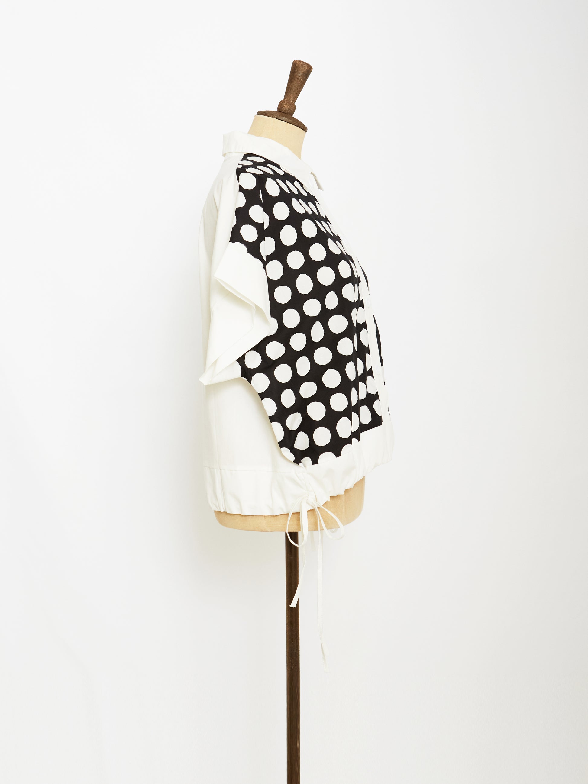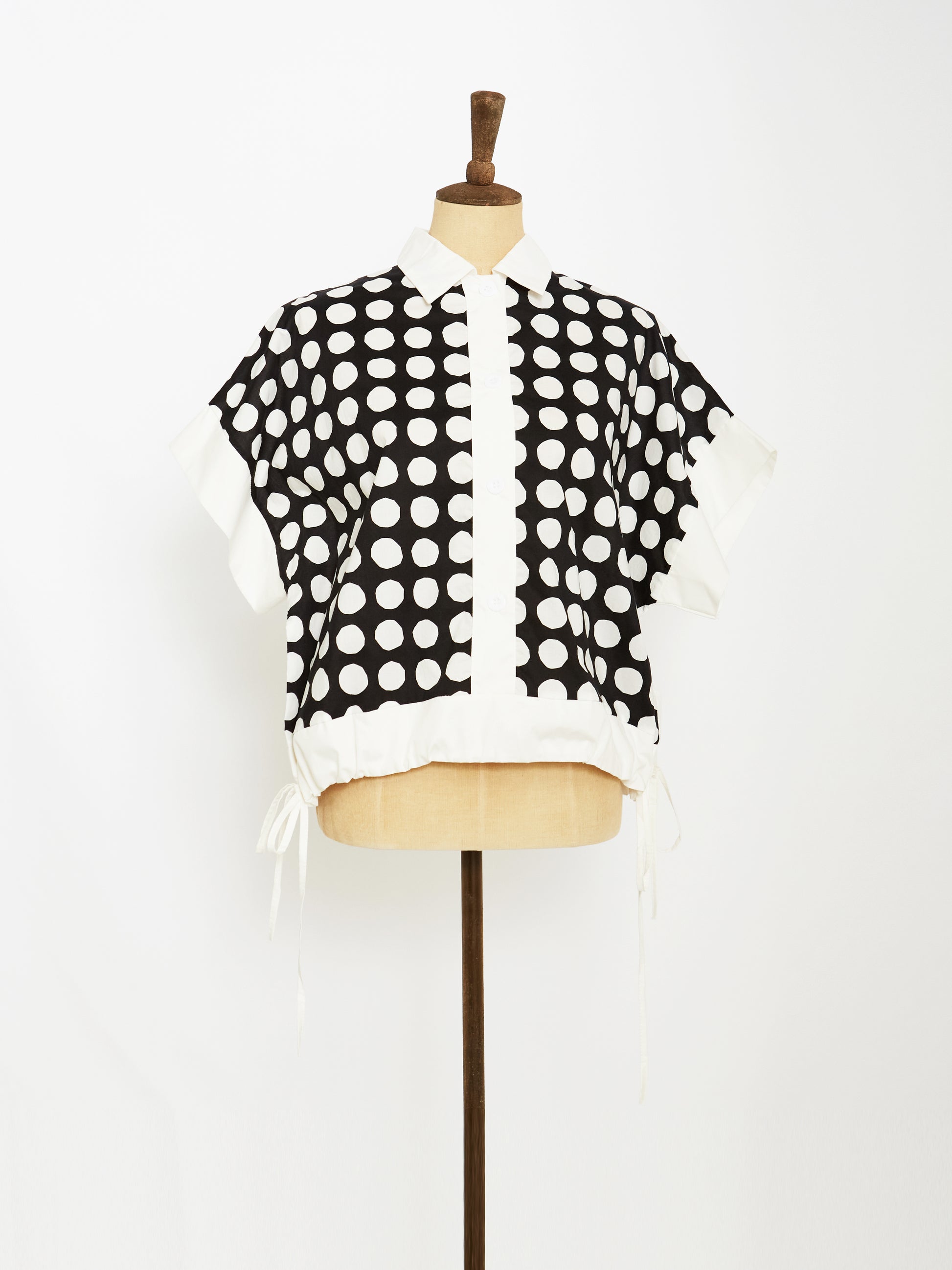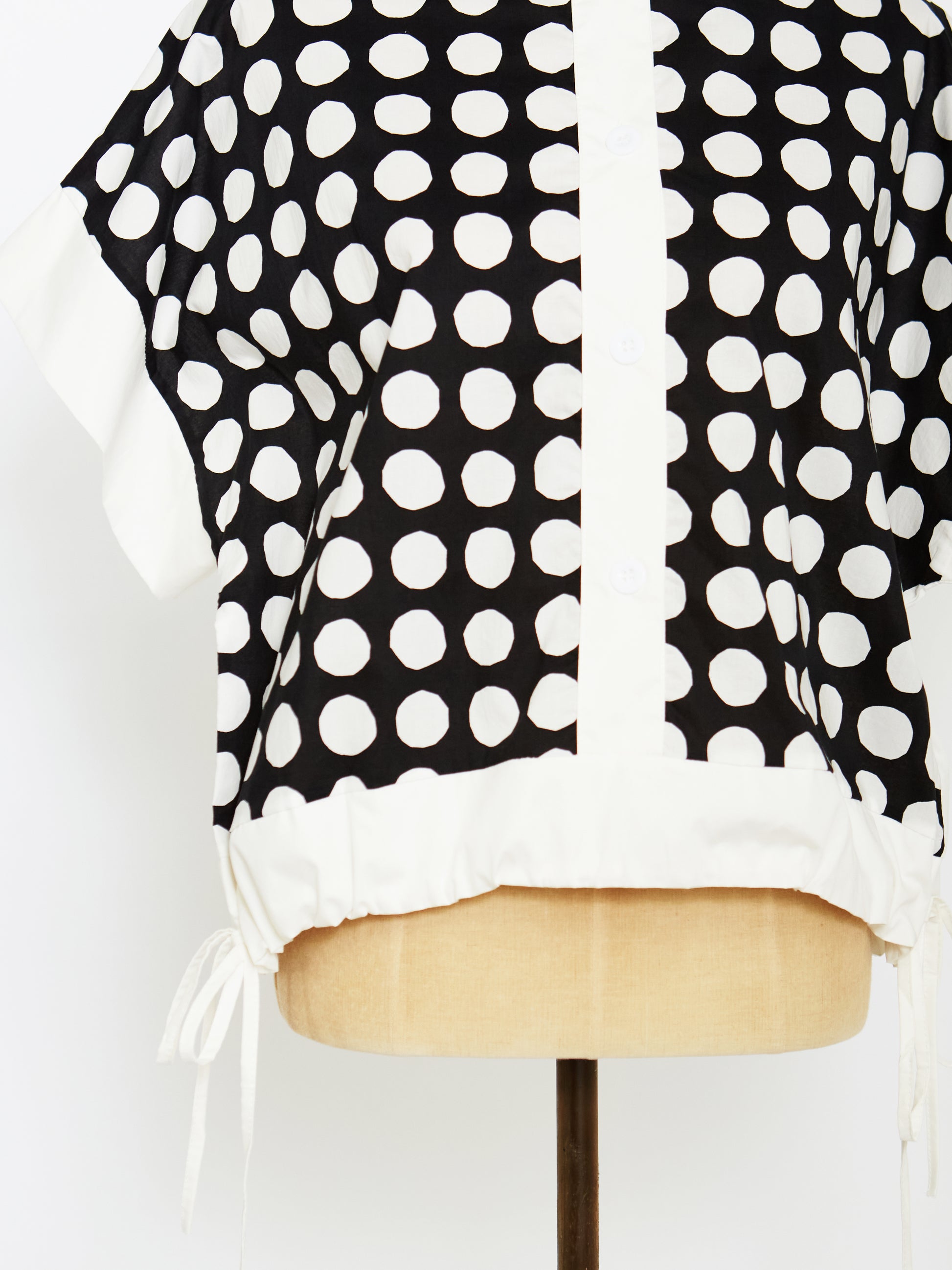 Crafted from pure cotton for a breathable finish in black and white dot pattern, this boxy fit shirt features a big arm hole for volume and dolman style sleeves for a chic silhouette. The side string elevates this style and adjustable.