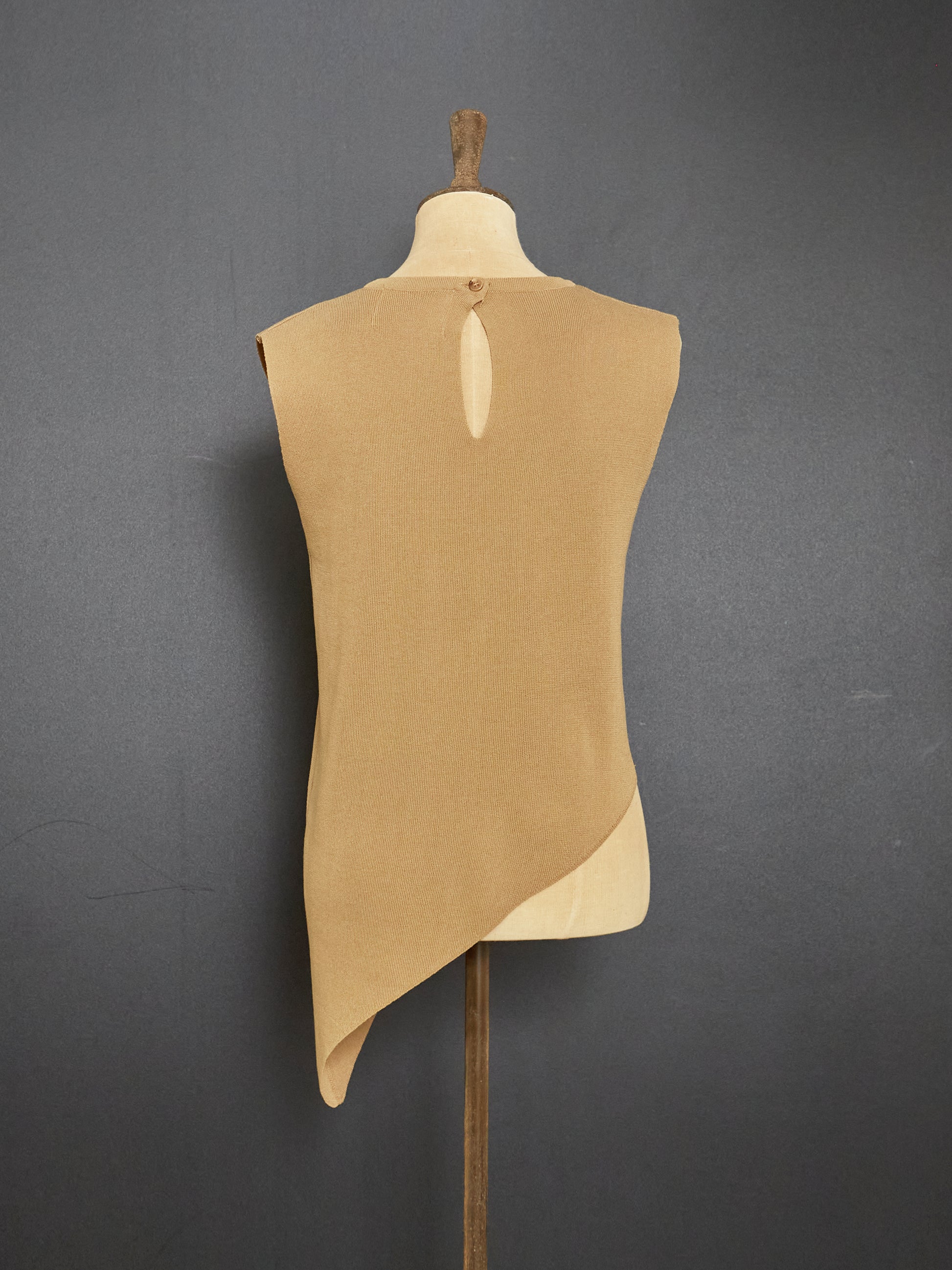 Crafted from viscose fabric for an edge finish in brown, this unbalance fit top features an asymmetrical hem line for a stylish silhouette. The back button detail elevates this style.