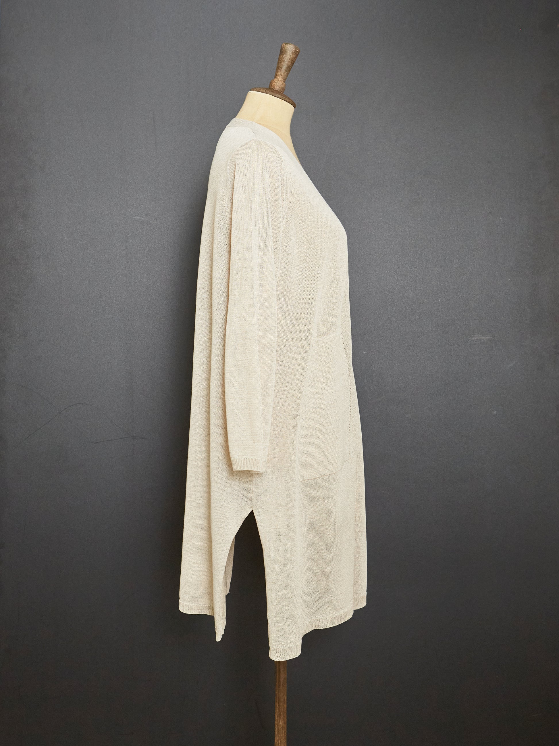 Crafted From Light Fabric For An Edge Finish In Beige, This Relaxed Fit Cardigan Features A Drapery Shape For A Laid-Back Silhouette. The Front Pockets Elevate This Style.