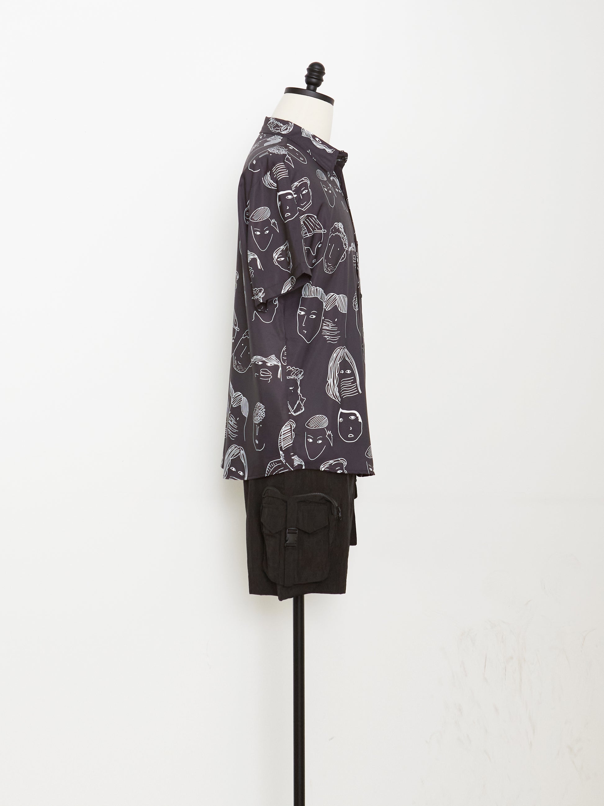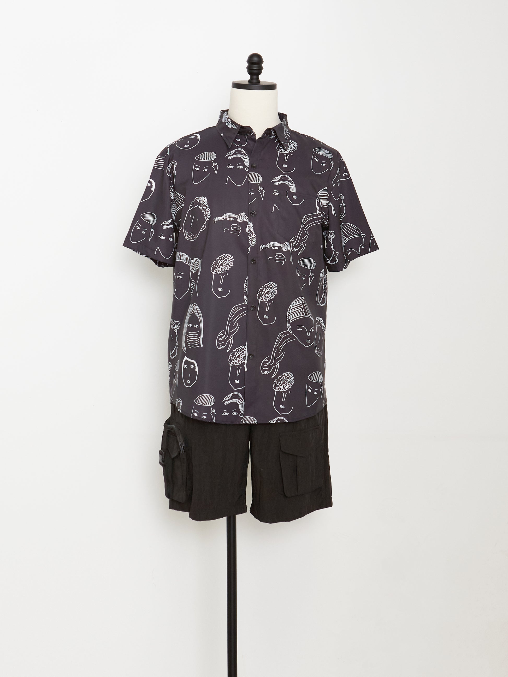 Crafted from polyester for a light finish in blue, this regular fit shirt features a unique human drawing for a laid-back but stylish style. The shirt collar with white stitch and black button elevate this style.