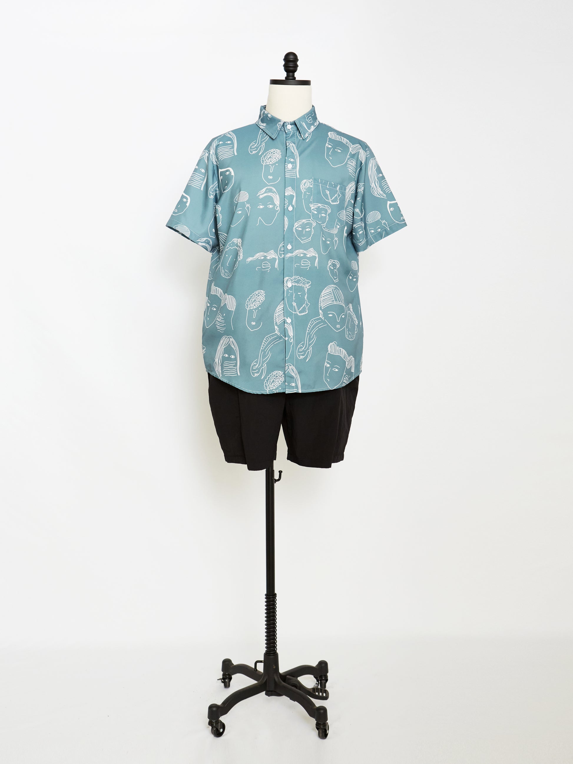 Crafted from polyester for a light finish in blue, this regular fit shirt features a unique human drawing for a laid-back but stylish style. The shirt collar with white stitch and white button elevate this style.