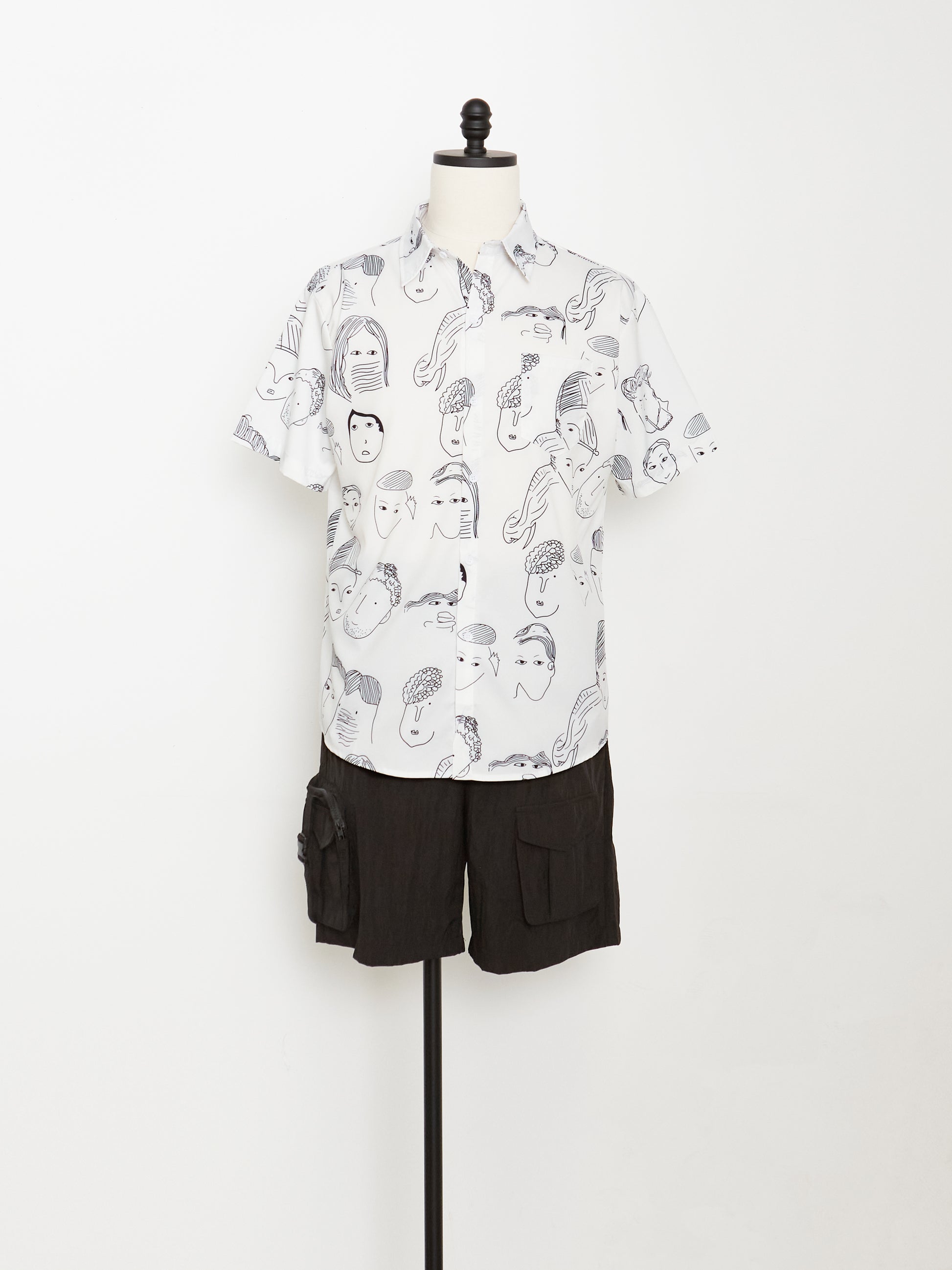 Crafted from polyester for a light finish in blue, this regular fit shirt features a unique human drawing for a laid-back but stylish style. The shirt collar with white stitch and white button elevate this style.