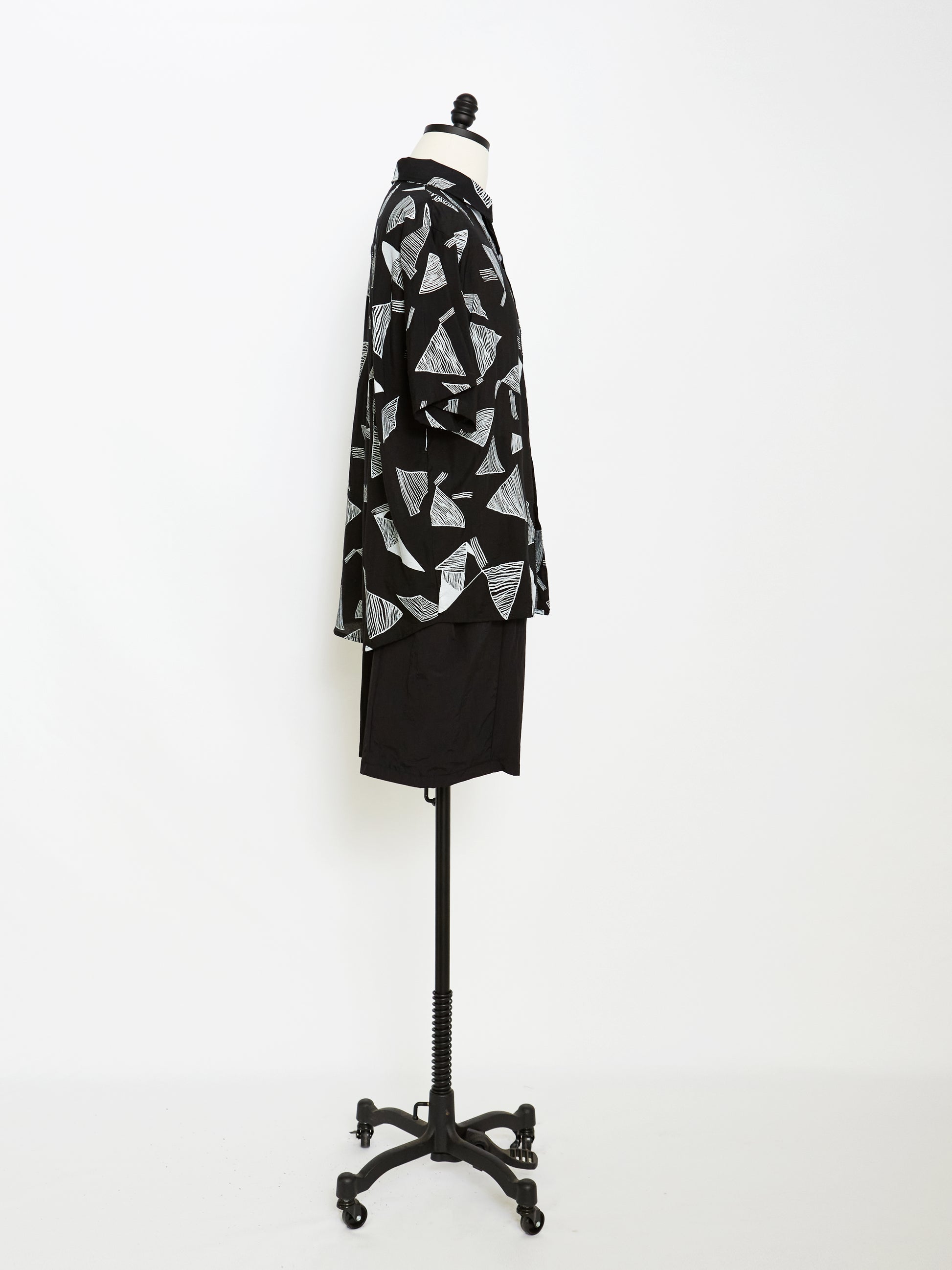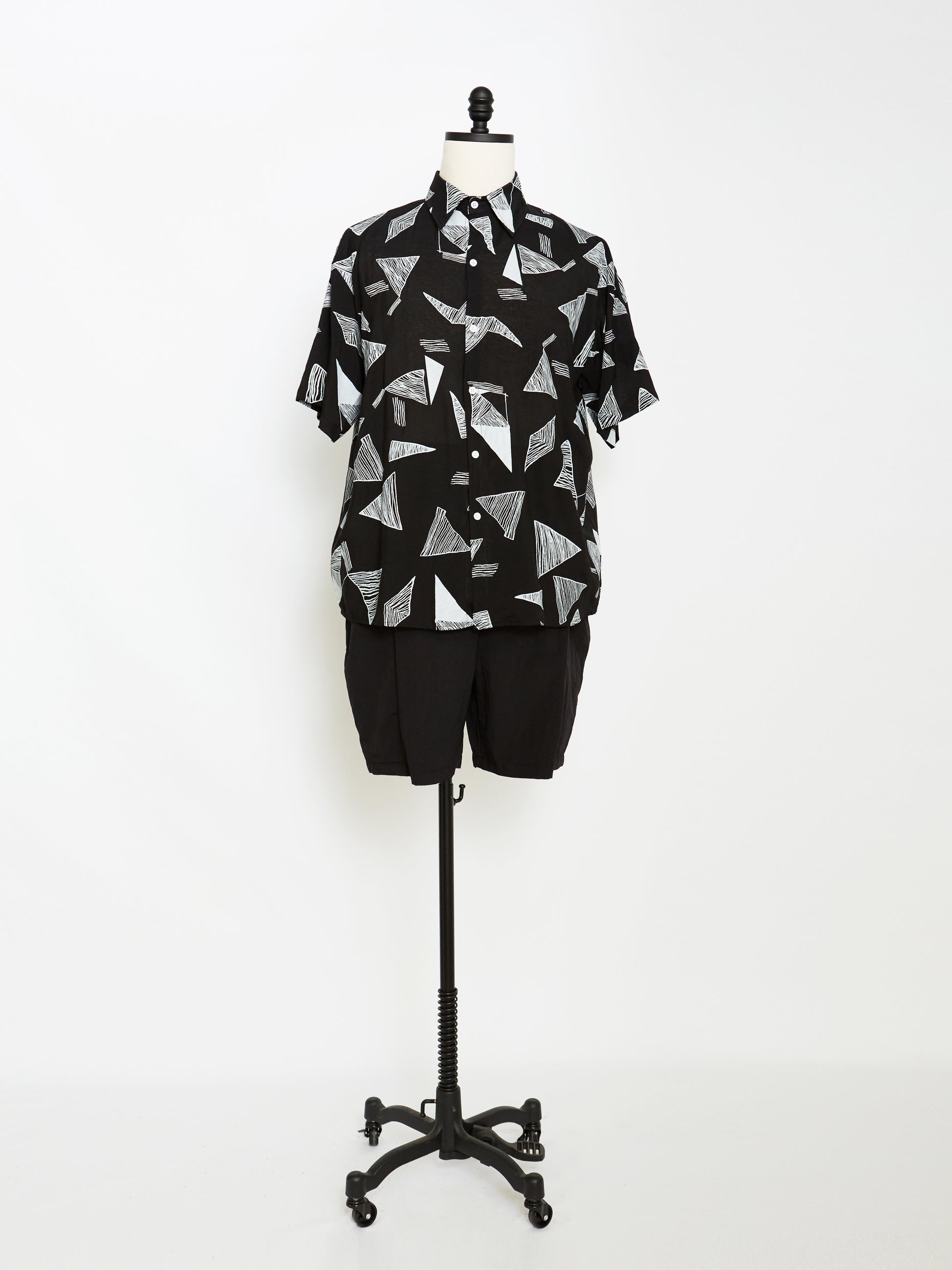 Crafted From Polyester For A Light Finish In Black, This Regular Fit Shirt Features A Unique Triangle Drawing For A Laid-Back But Stylish Style. The Shirt Collar With White Stitch And White Button Elevate This Style.