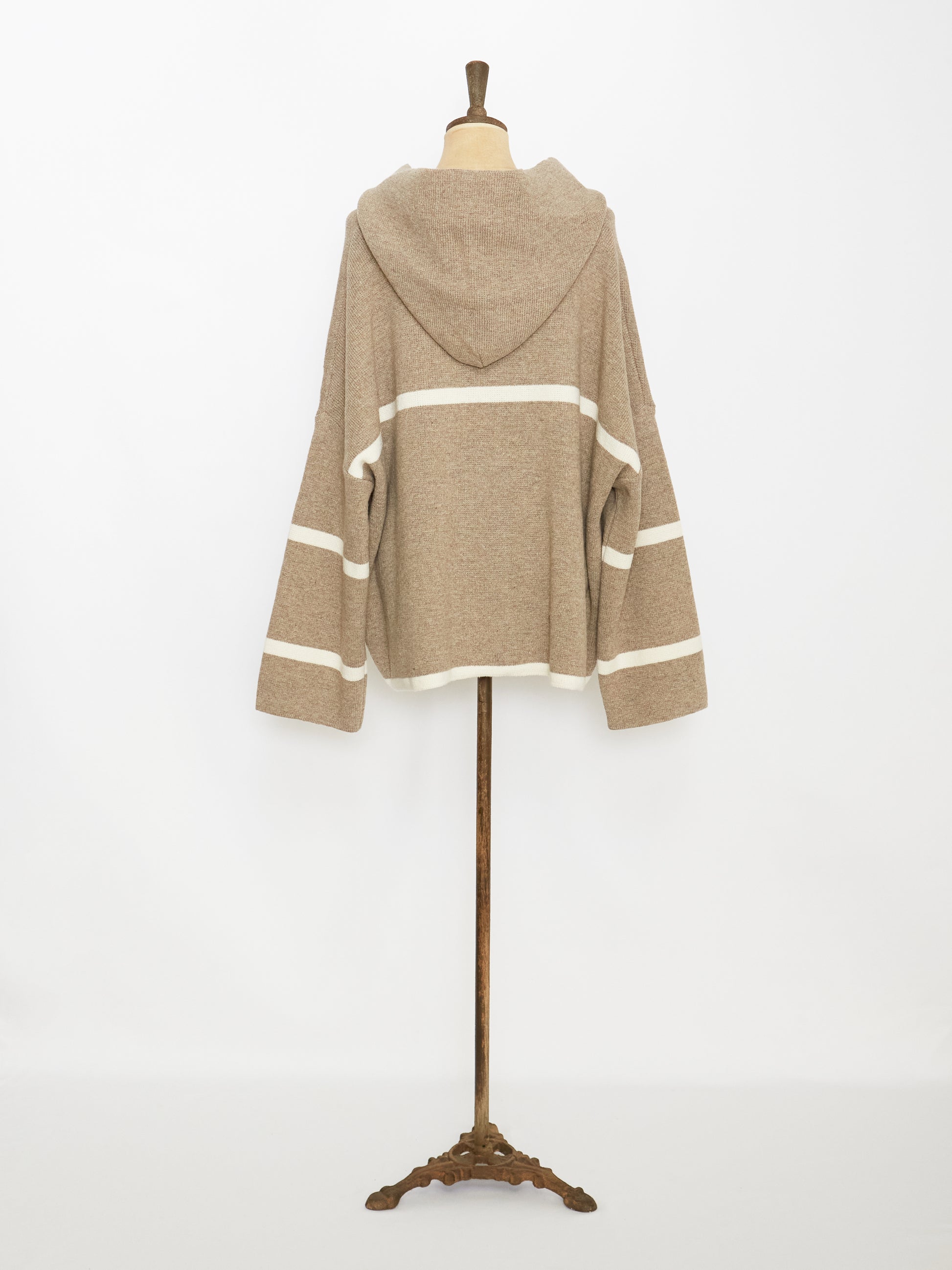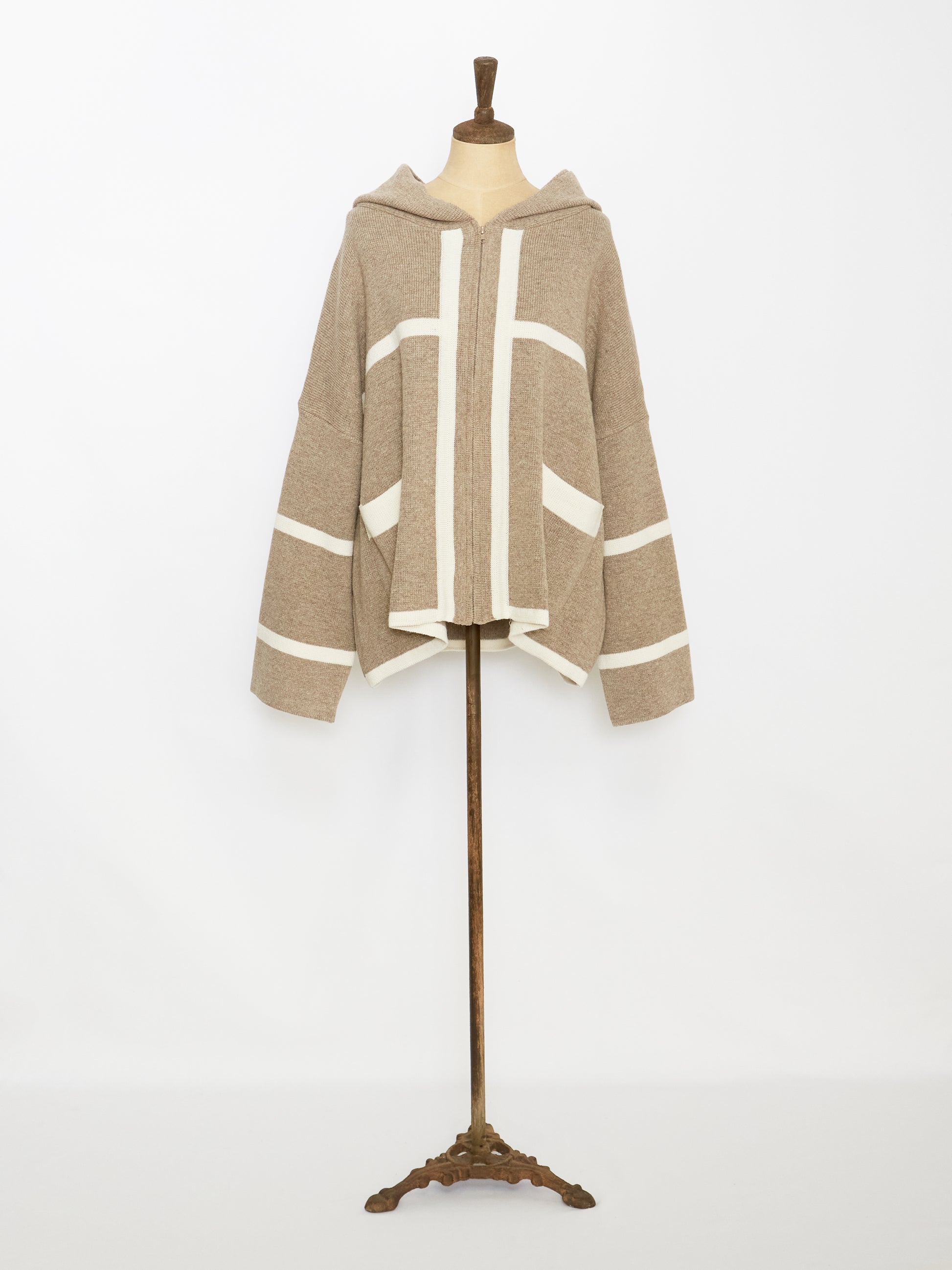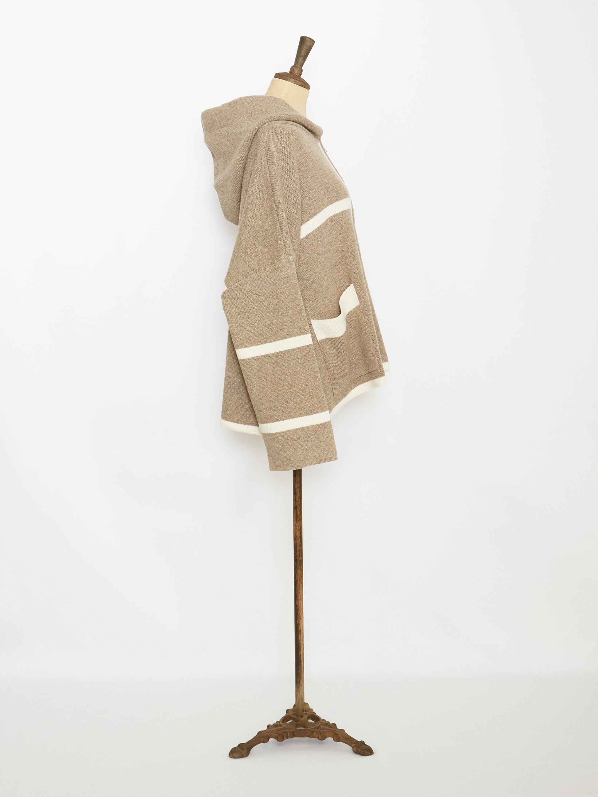 Crafted from blended wool for an edge finish in brown, this regular fit hoodie jacket features color stripe details for simple but unique style for a laid-back silhouette.