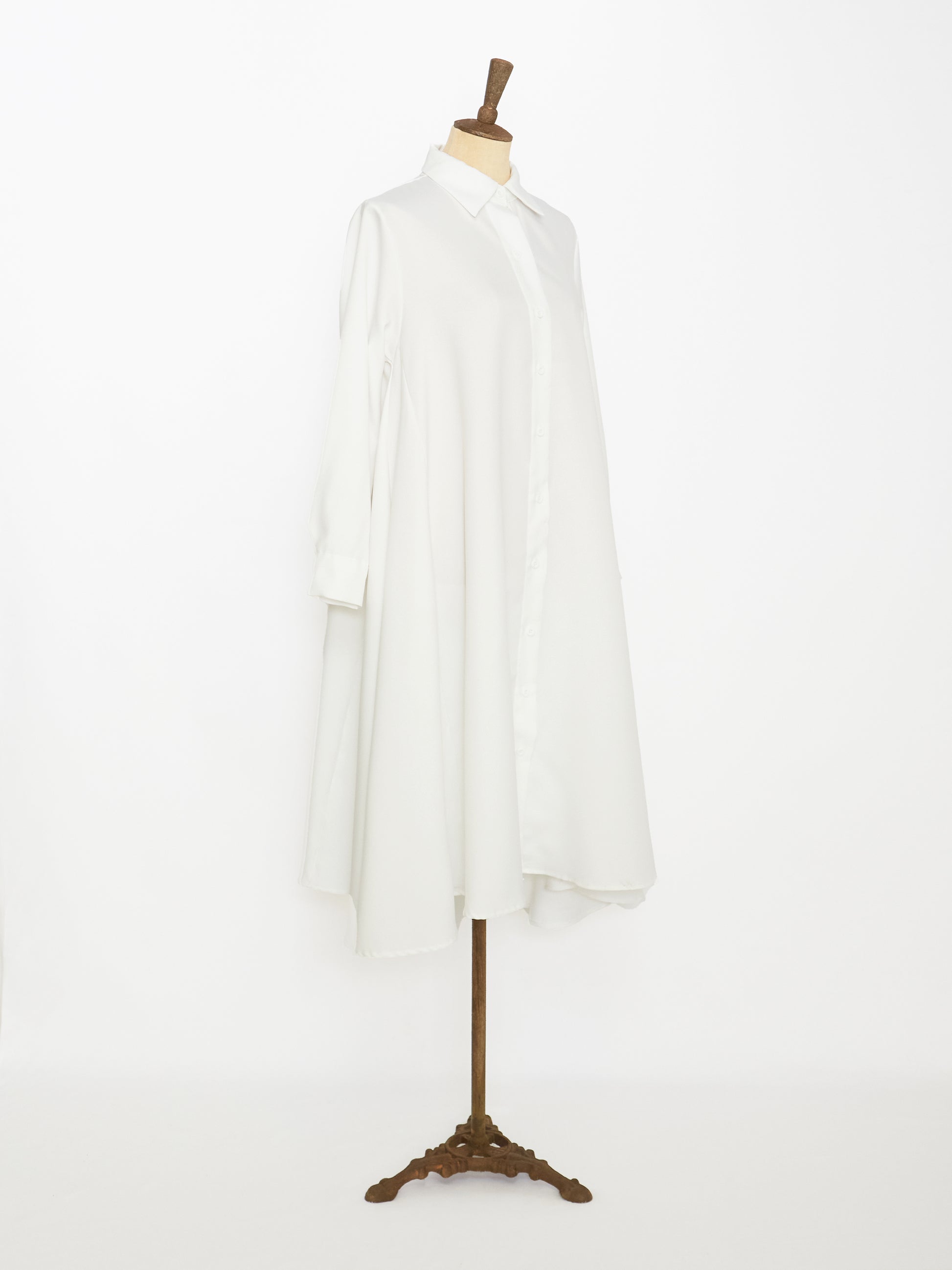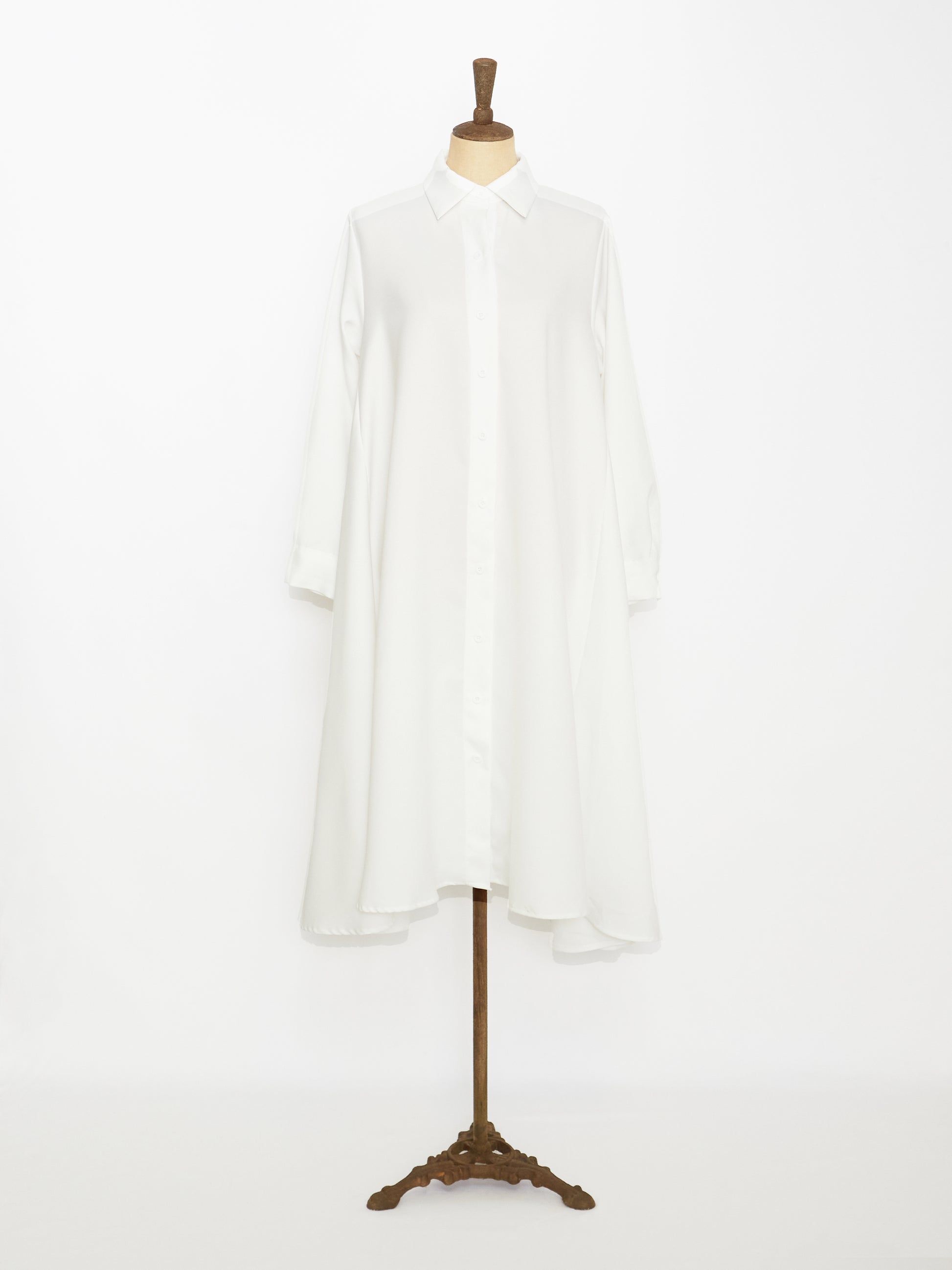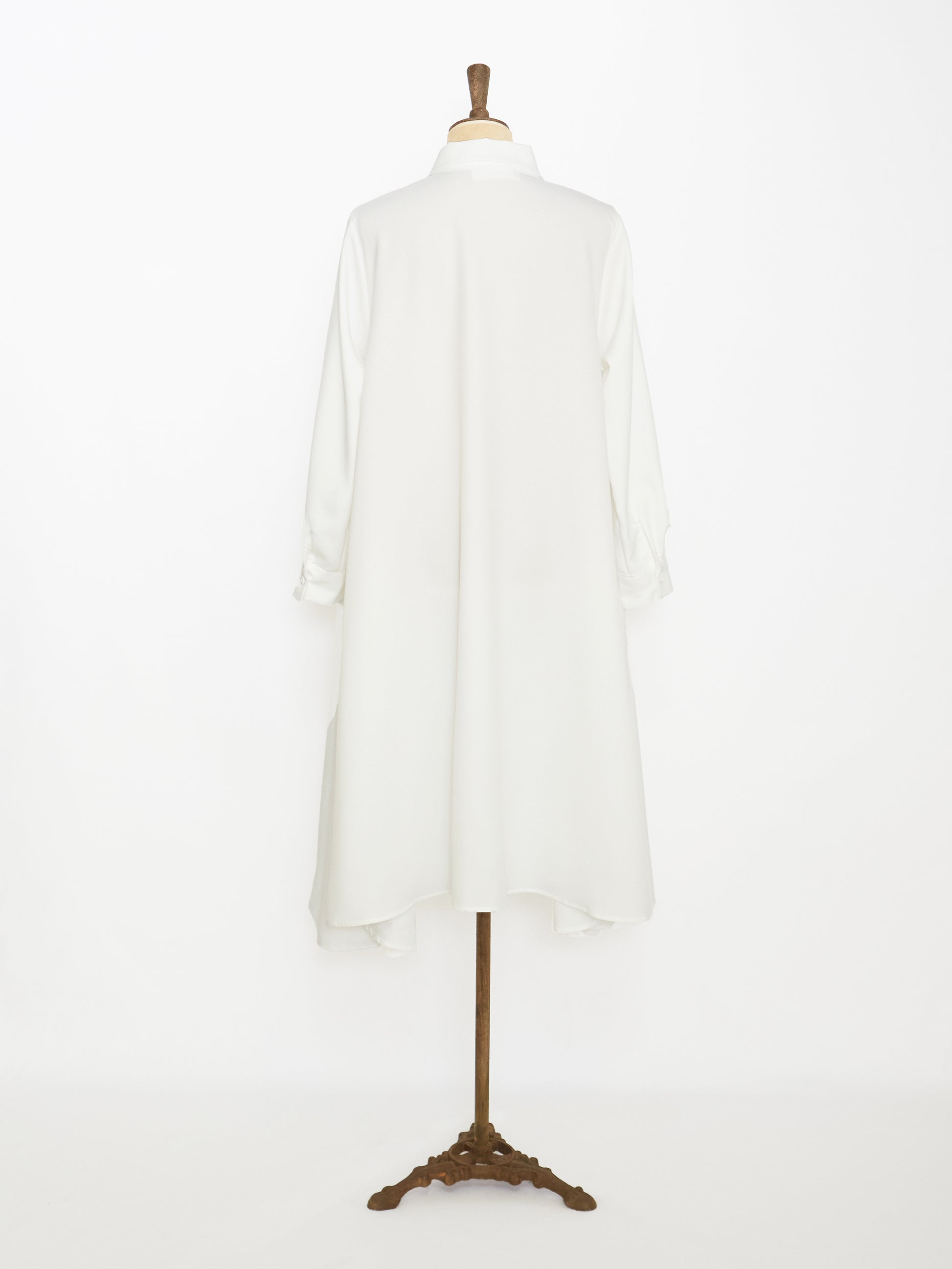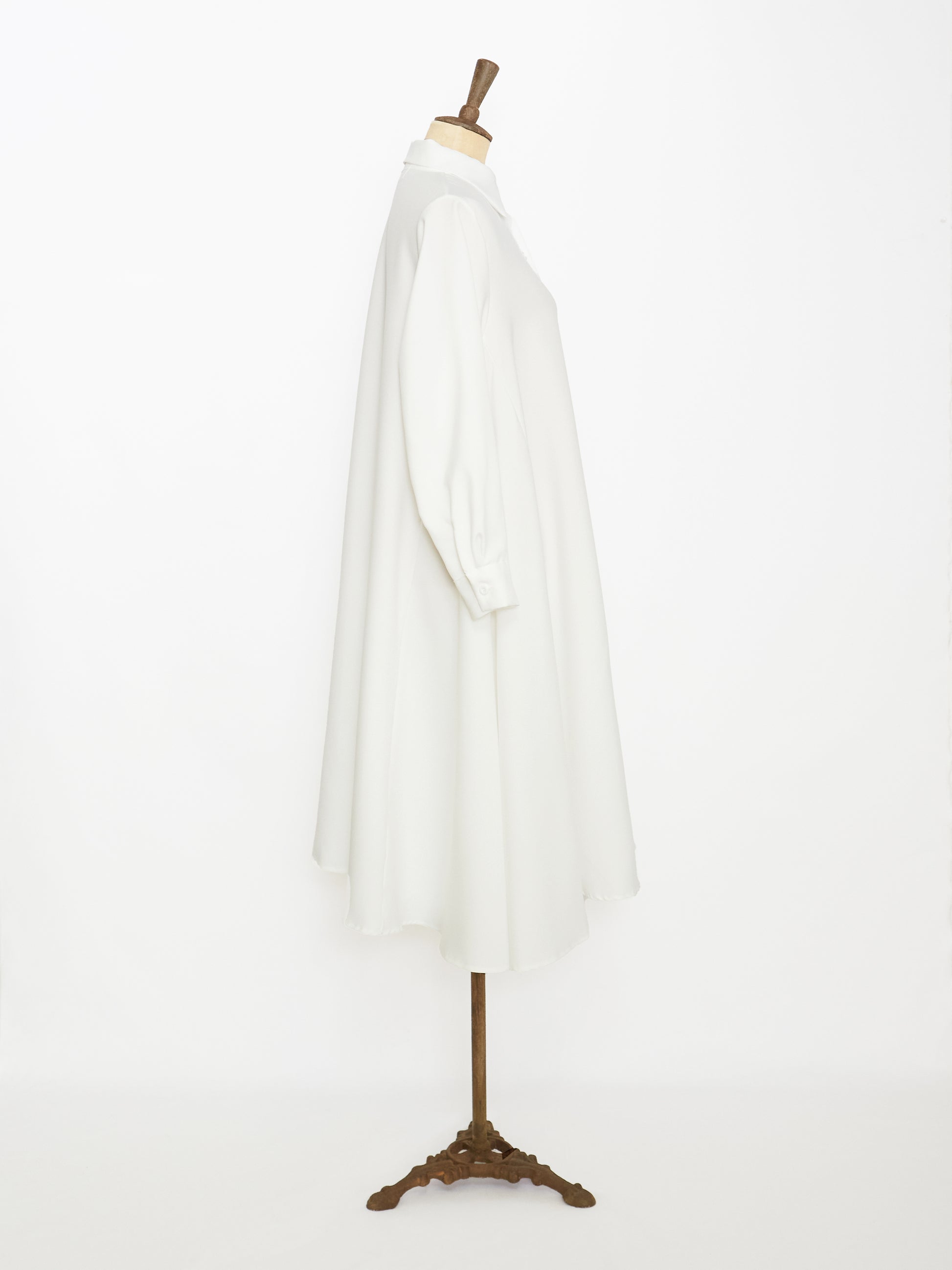 Crafted from blended fabric for an edge finish in white, this a-line fit dress features shirt collar and long length with flares for simple and lovely style for a laid-back silhouette.