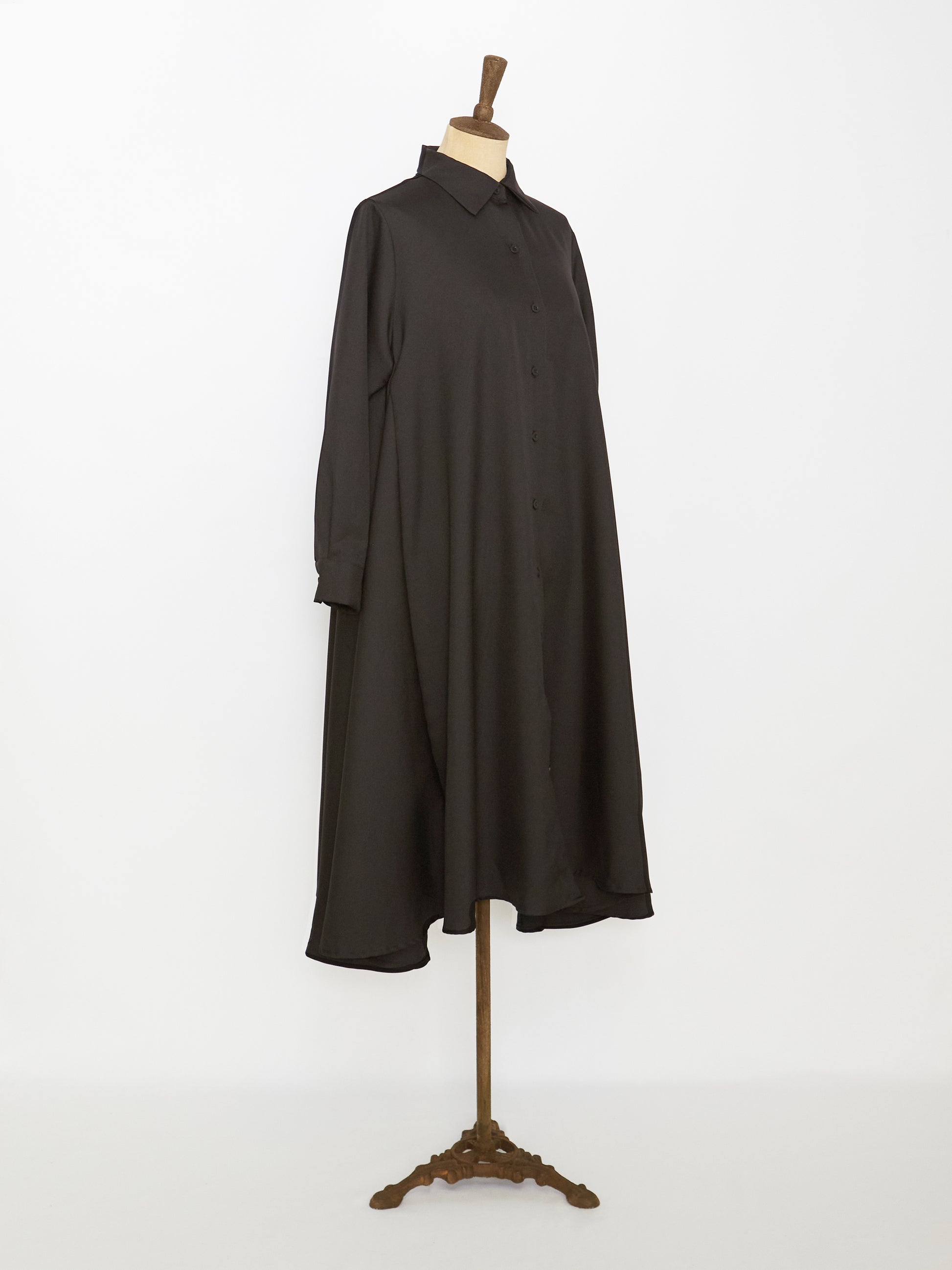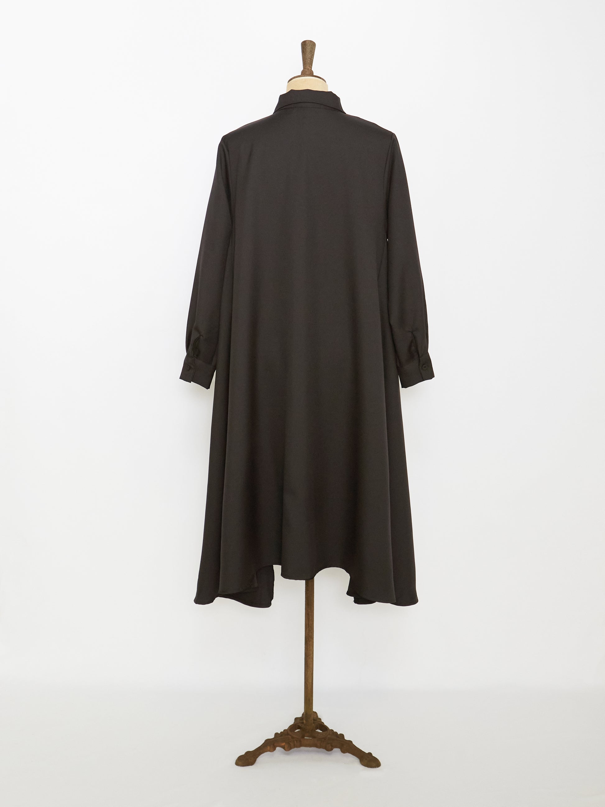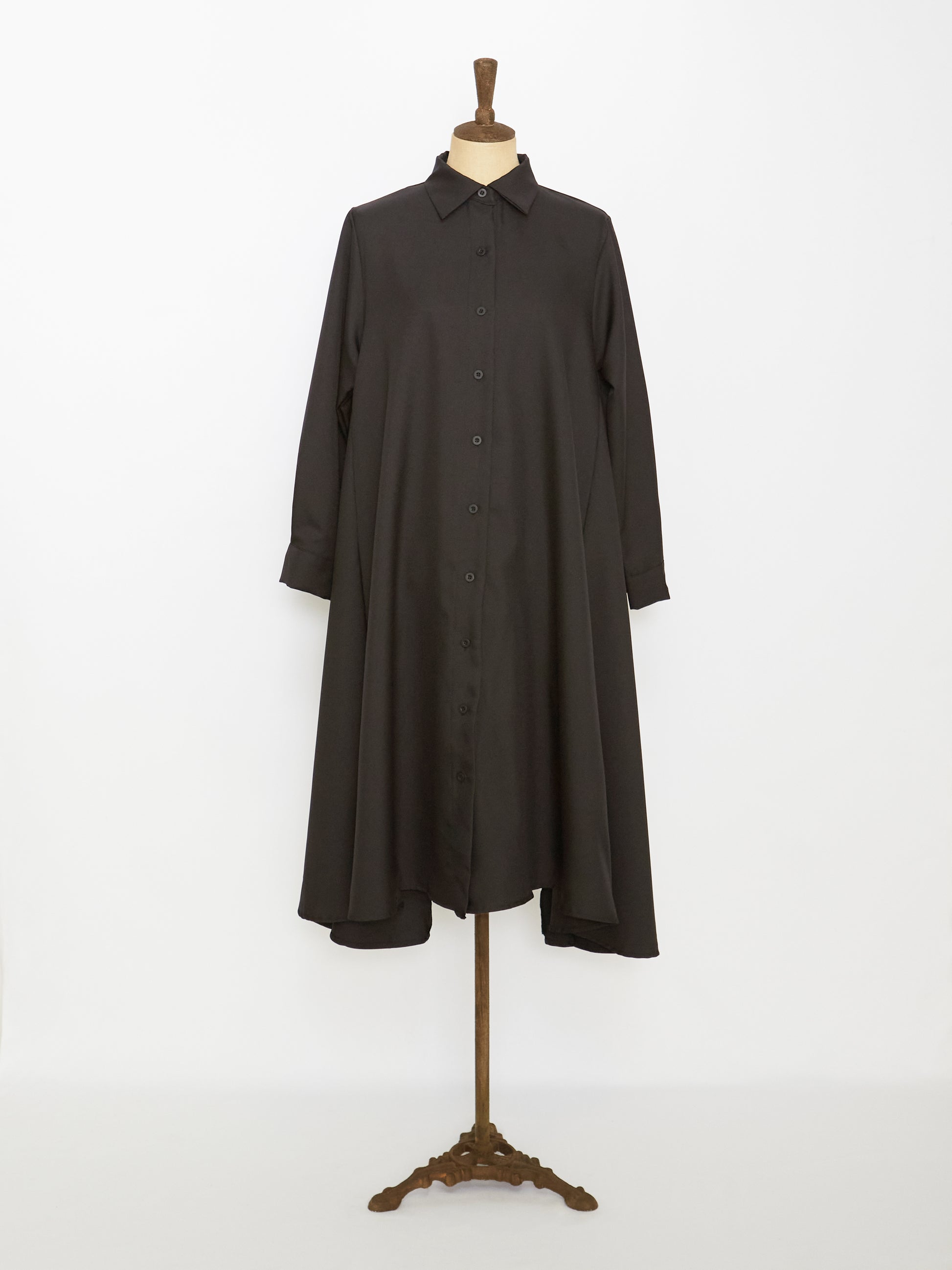 Crafted from blended fabric for an edge finish in black, this a-line fit dress features shirt collar and long length with flares for simple and lovely style for a laid-back silhouette.
