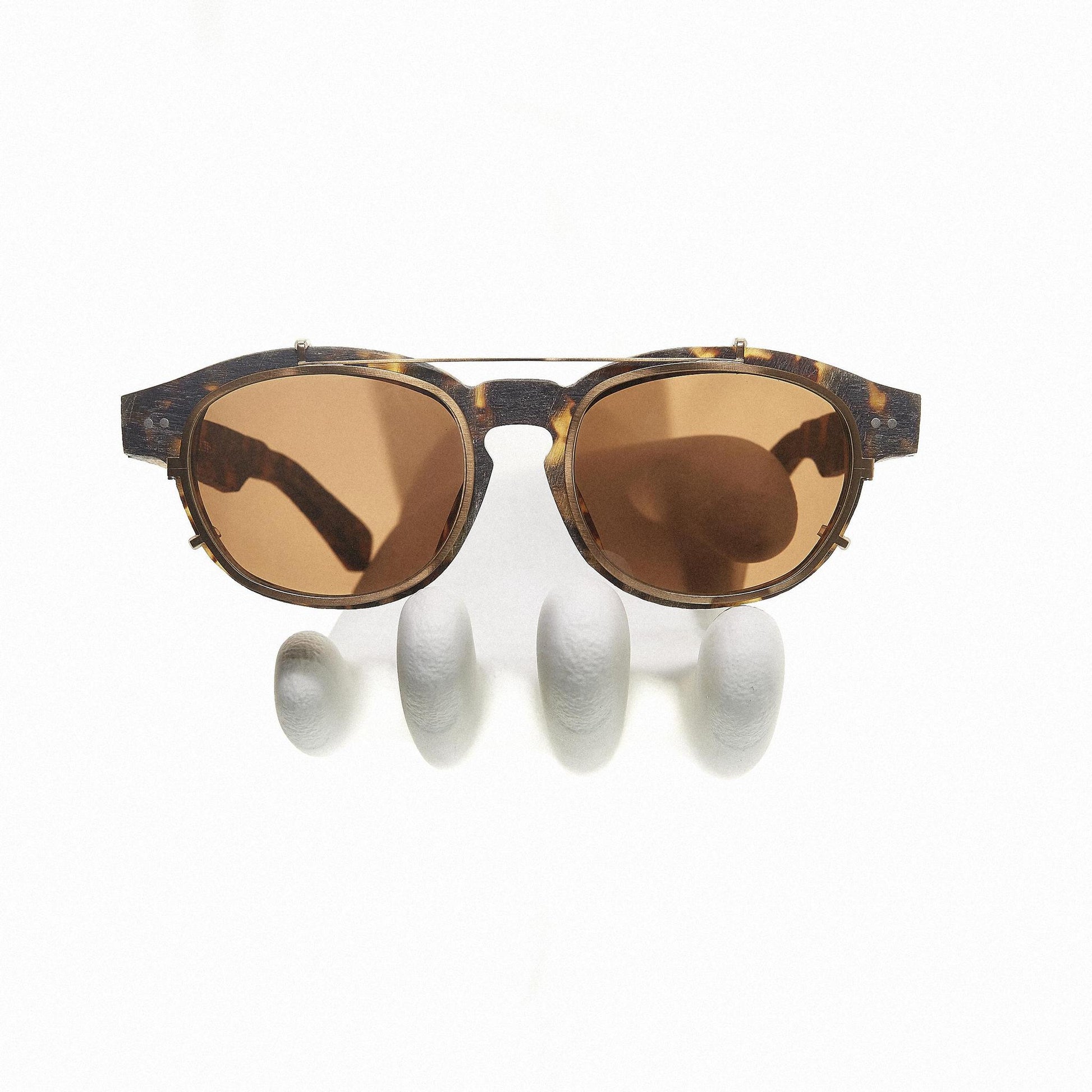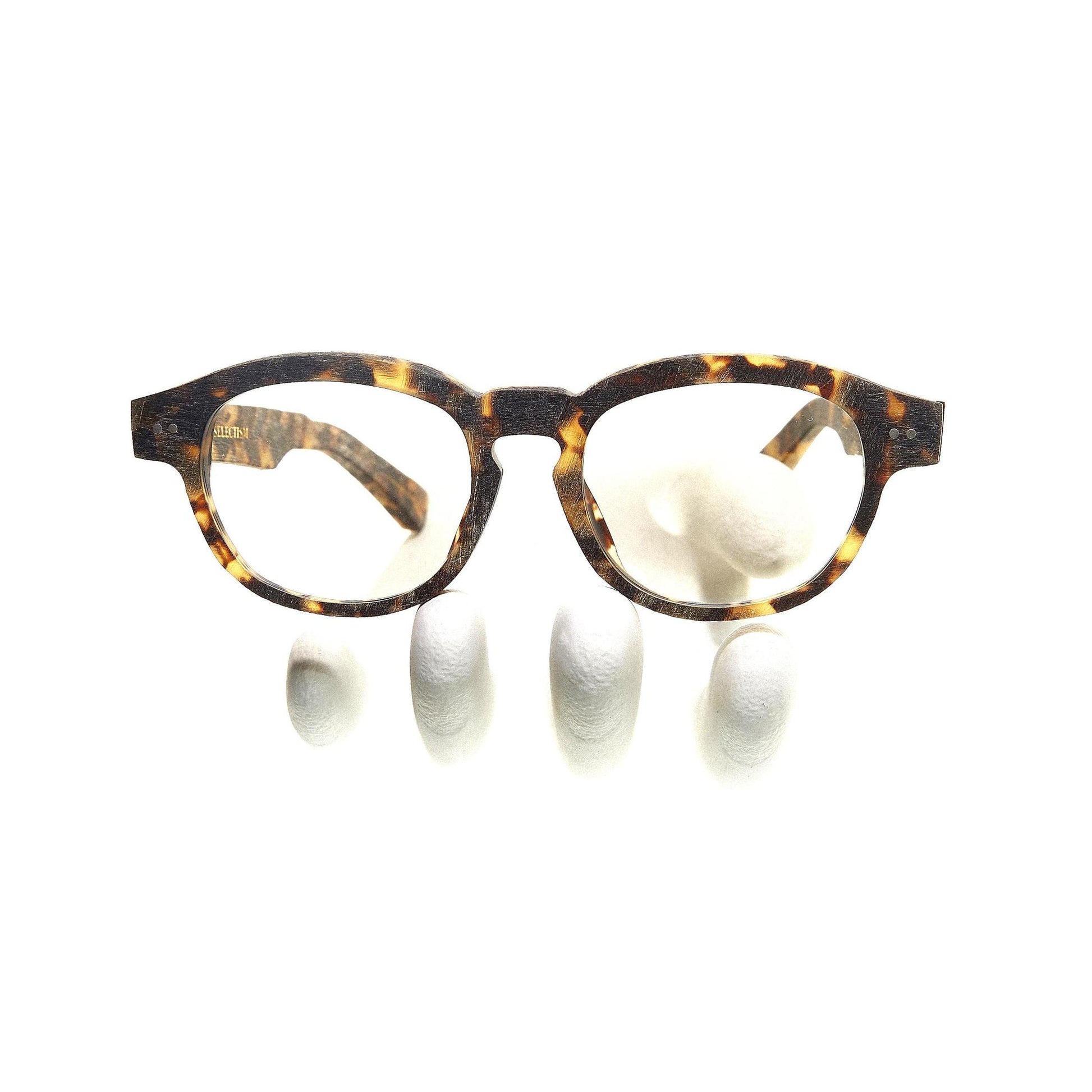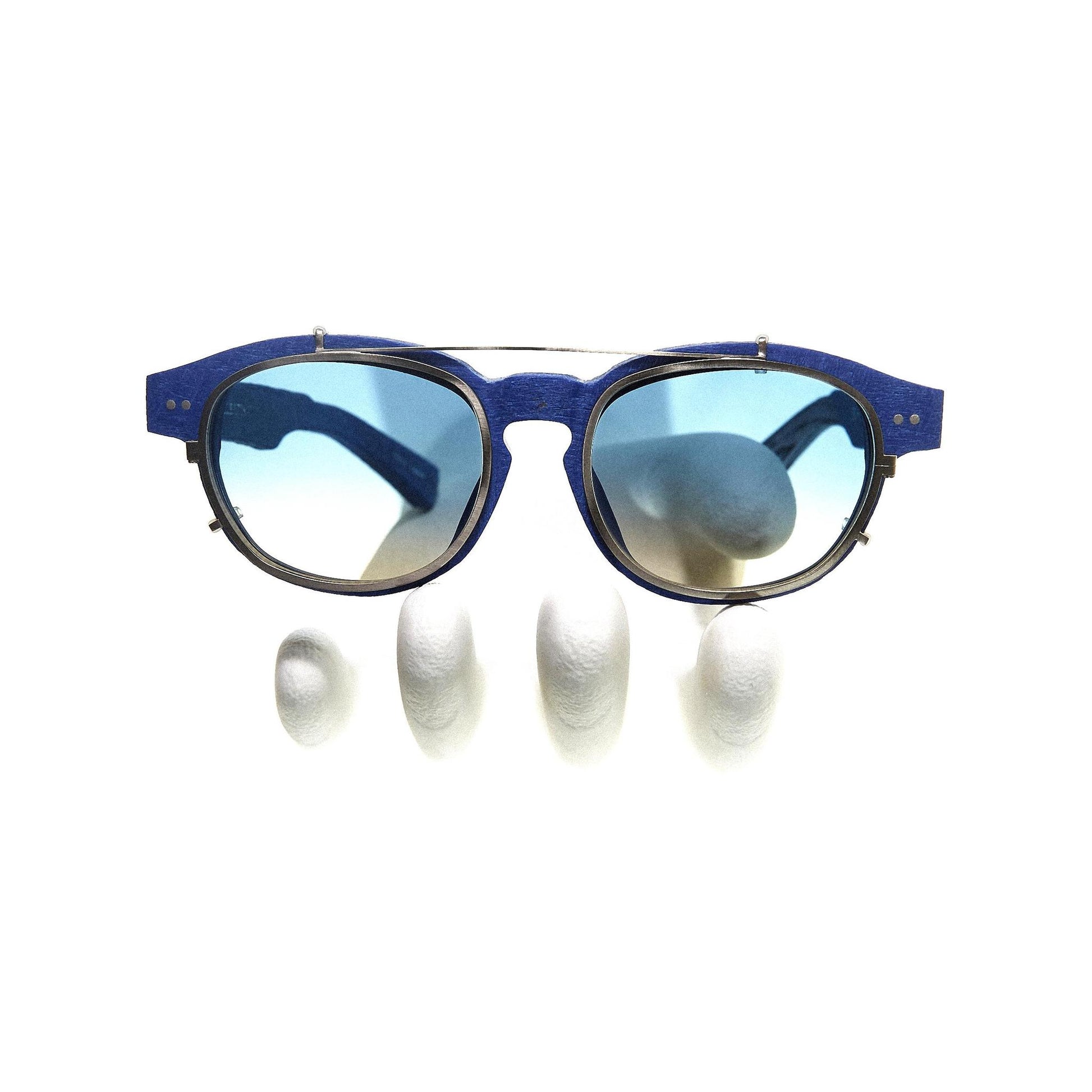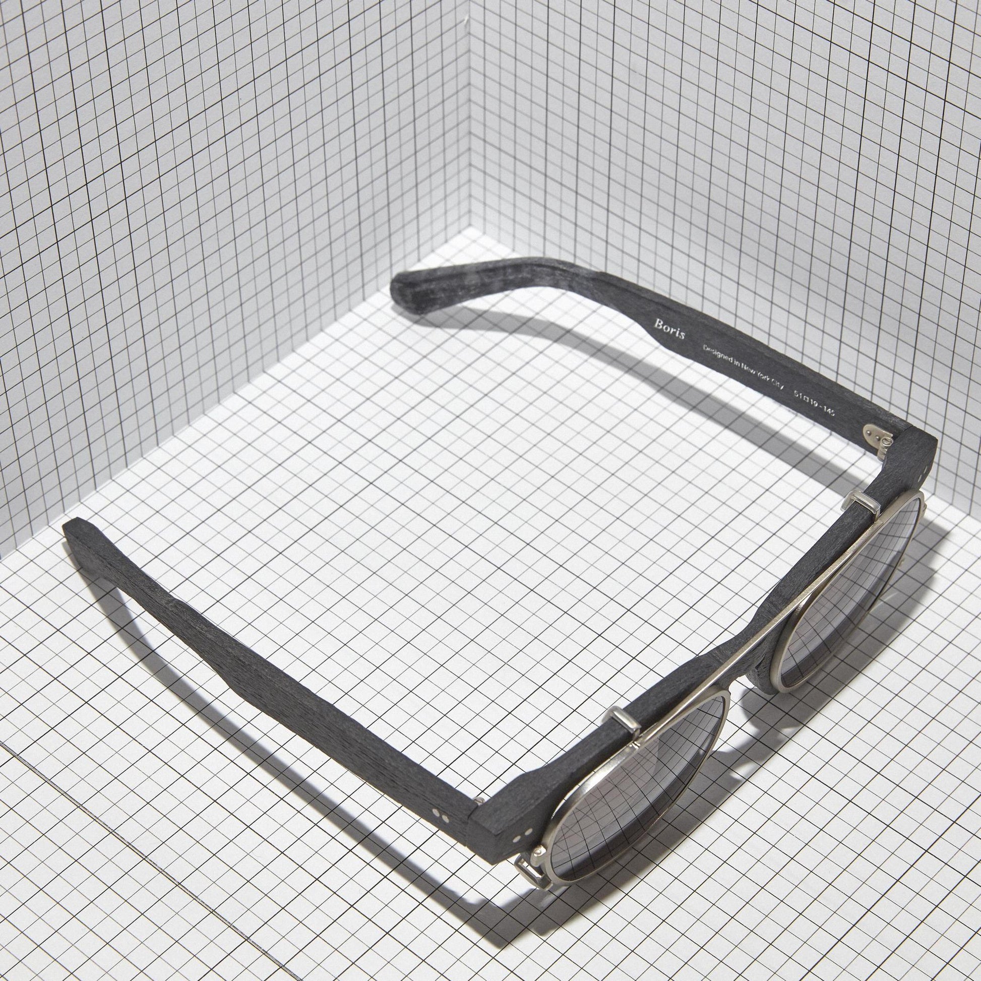 DISCOVER BORIS; a bold curved brow-line frame modernized from the classic pantos shape featuring clear lens glasses with a flexible clip-on. Rubberized silver metal clip-on ensures stability along with a keyhole bridge that completes an organic-shaped aviator silhouette.