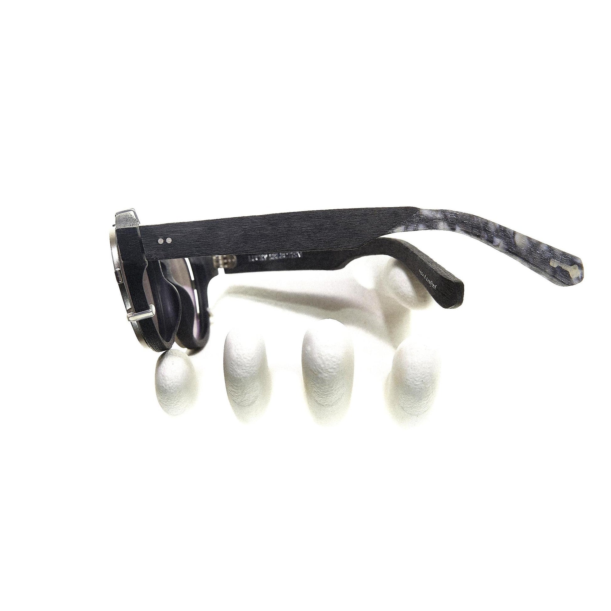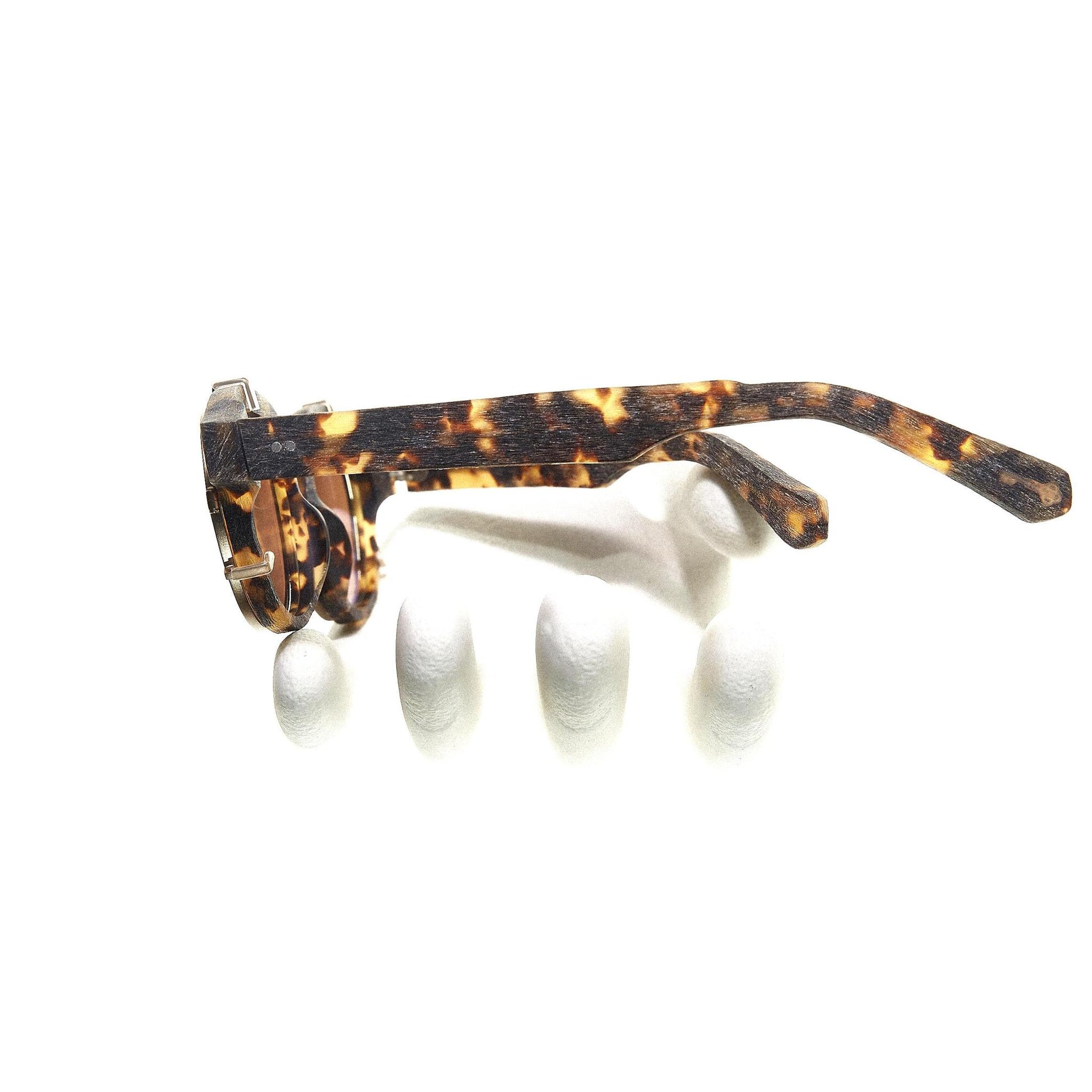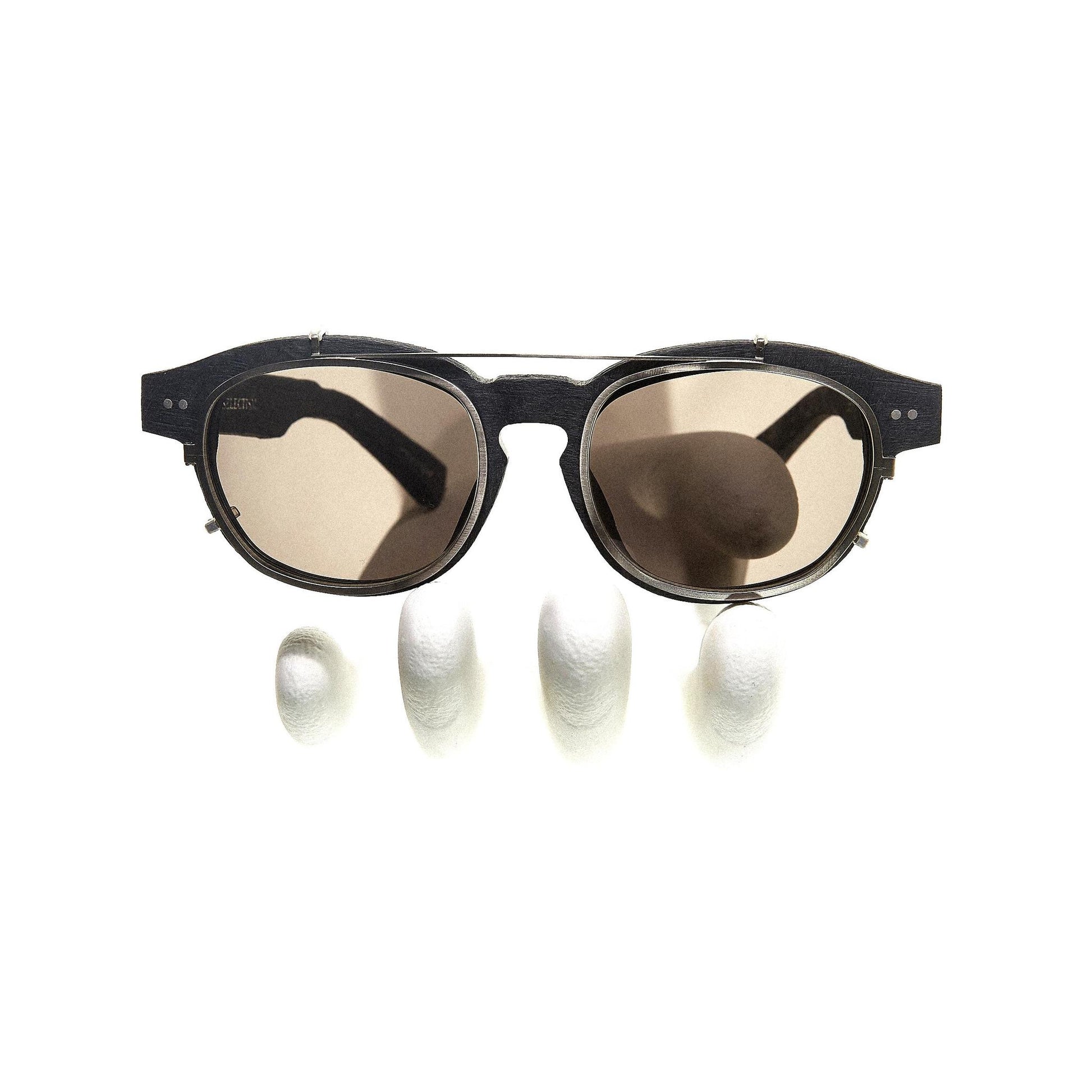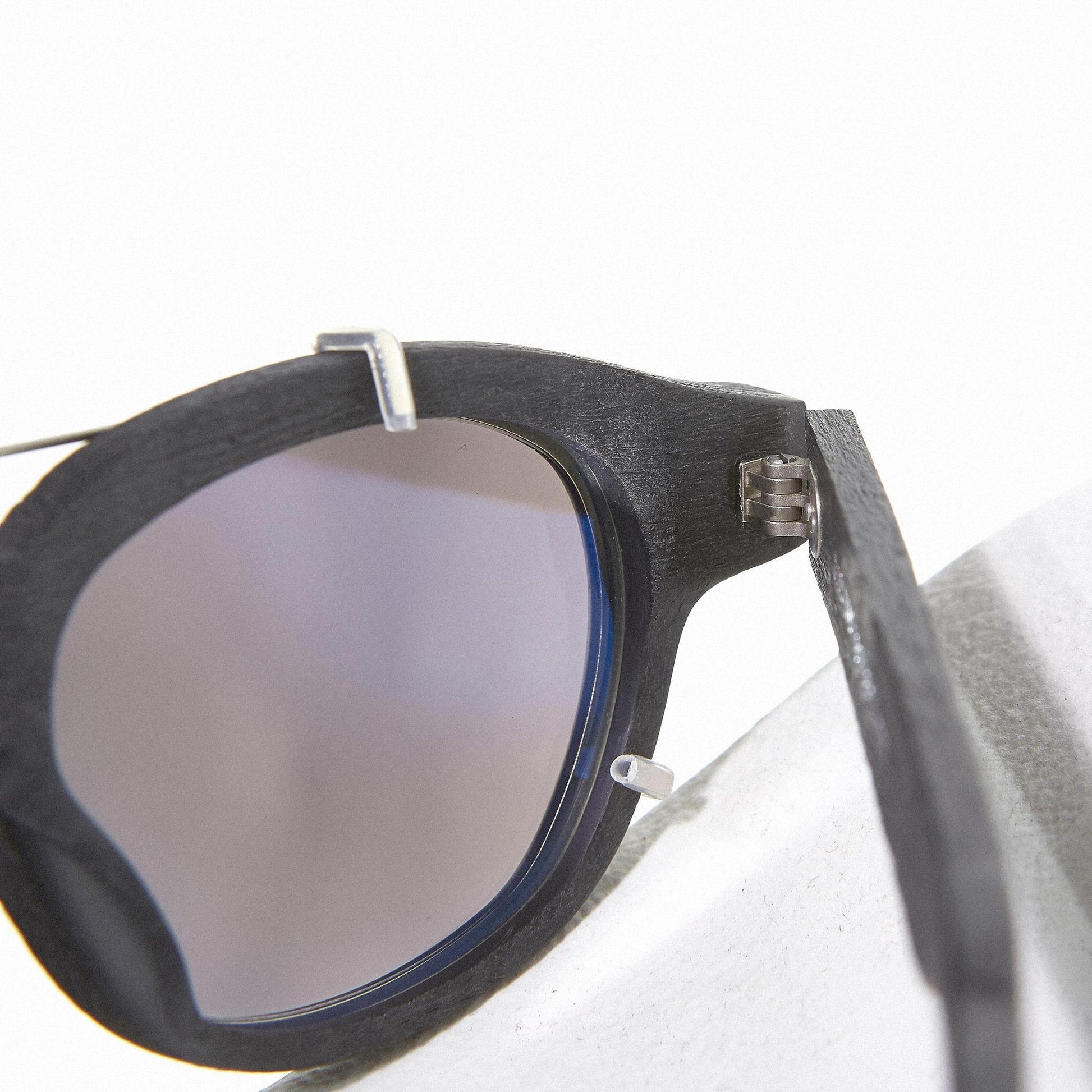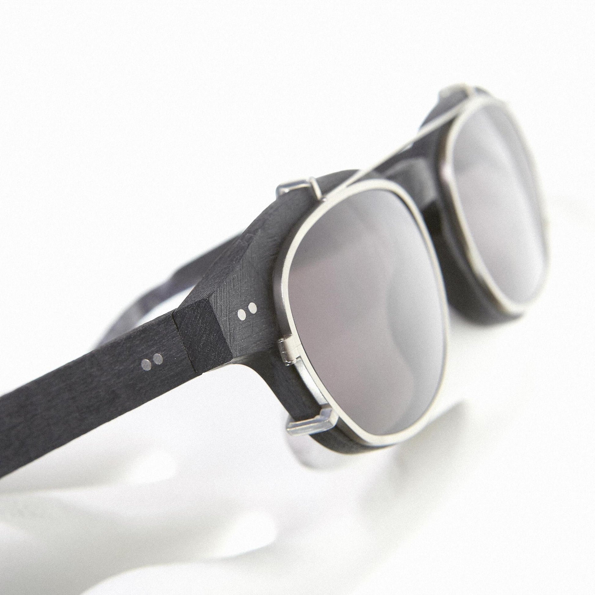DISCOVER BORIS; a bold curved brow-line frame modernized from the classic pantos shape featuring clear lens glasses with a flexible clip-on. Rubberized silver metal clip-on ensures stability along with a keyhole bridge that completes an organic-shaped aviator silhouette.