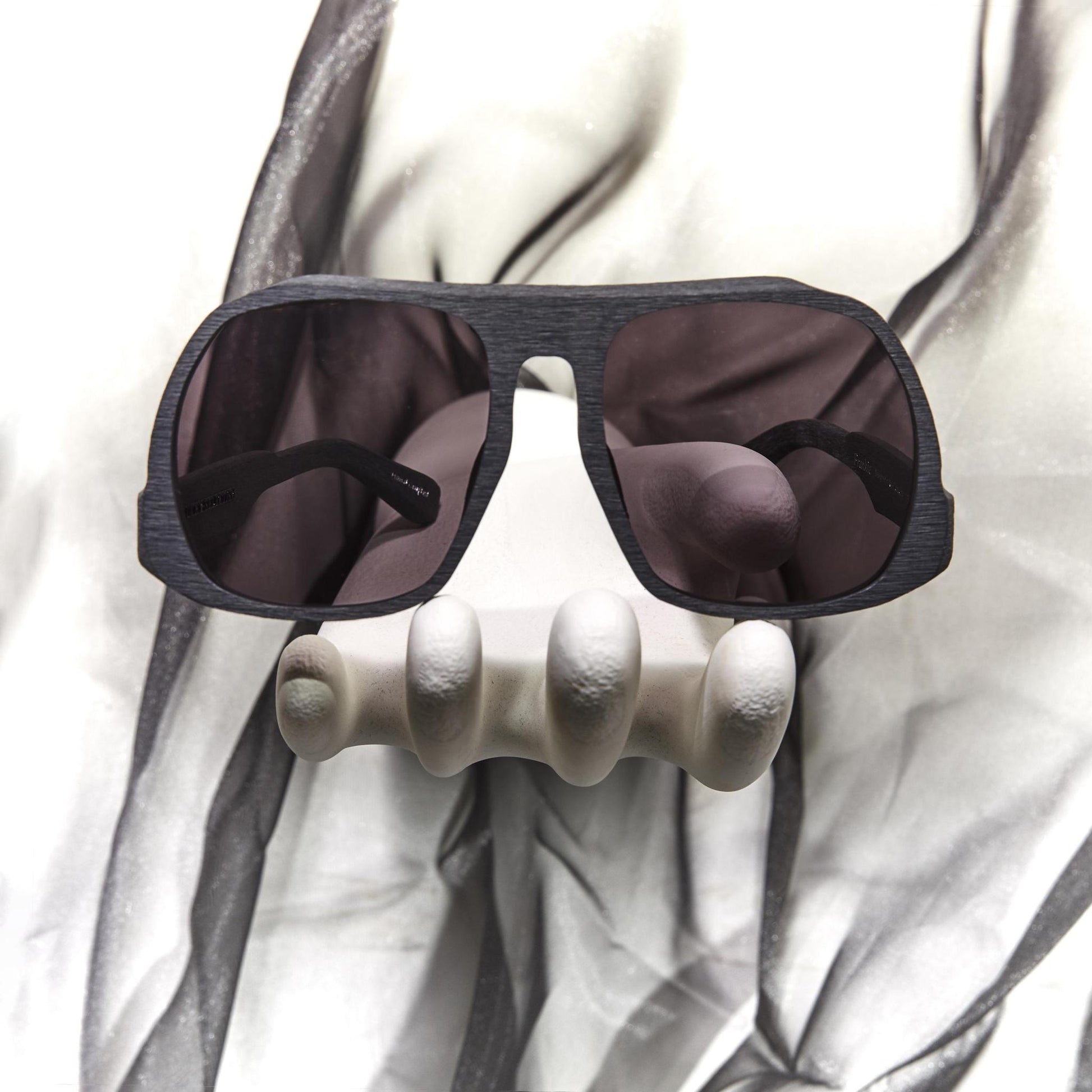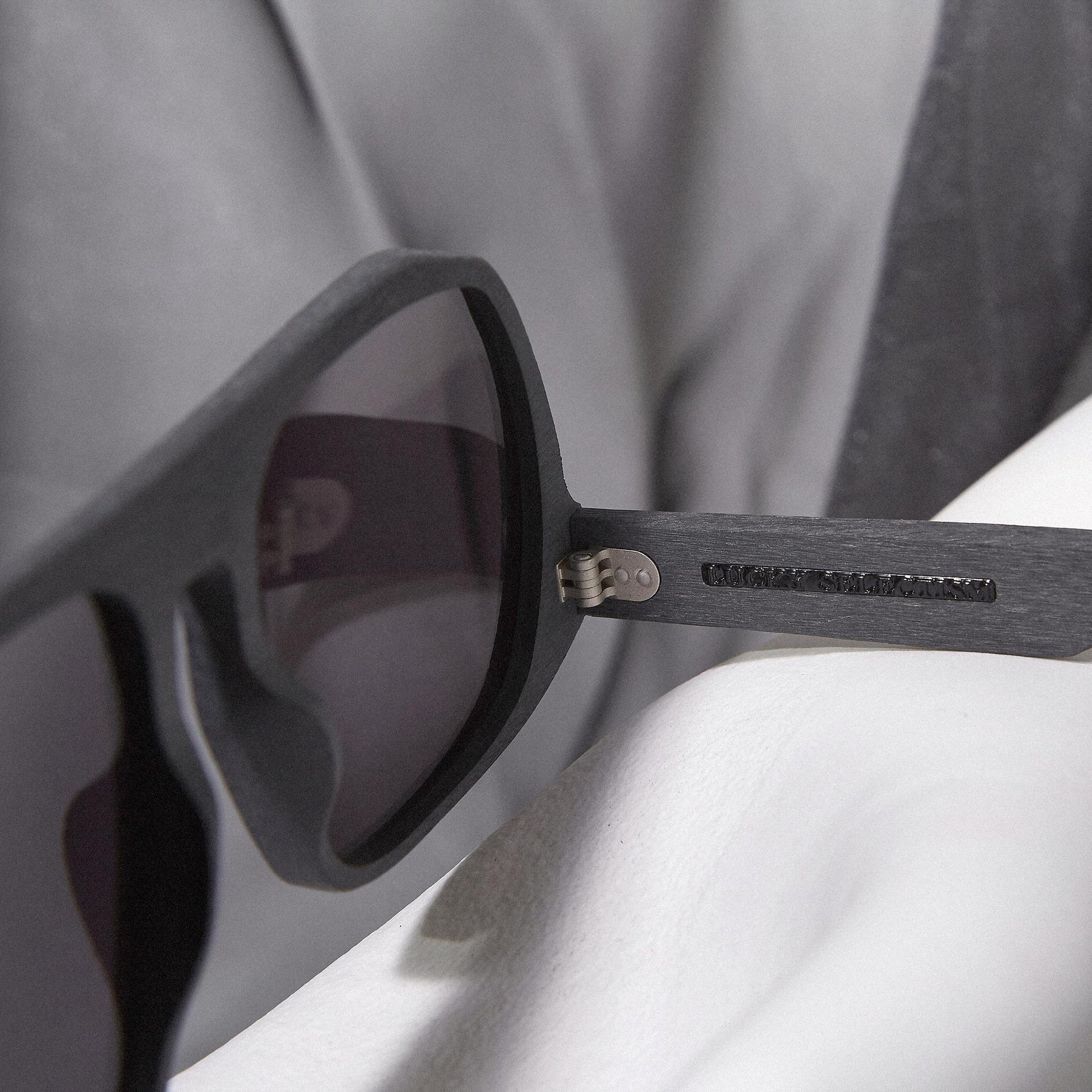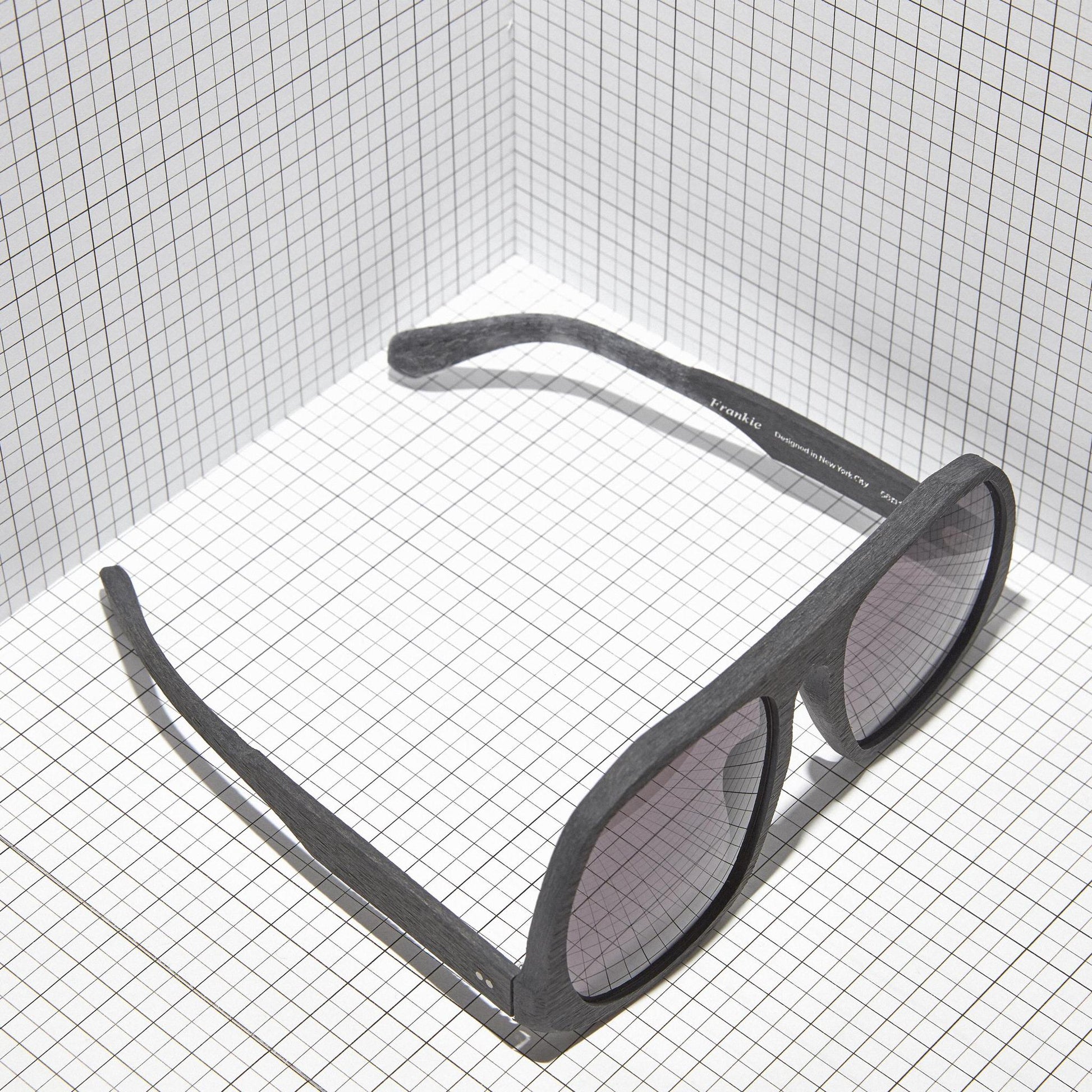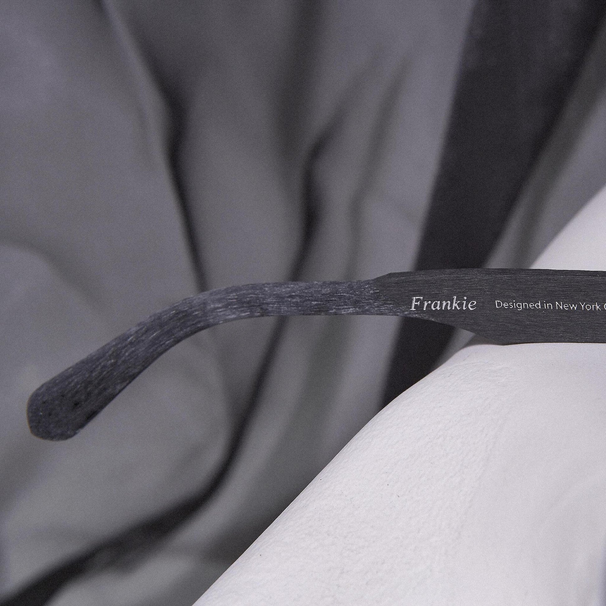 DISCOVER FRANKIE; a statement piece with a reversed square aviator shape with a bold flat-brow bar feature inspired by the 1990s. The big masculine design accentuates the iconic look of care-free style. Hand-carved details fall effortlessly with the matte hand-brushed texture.