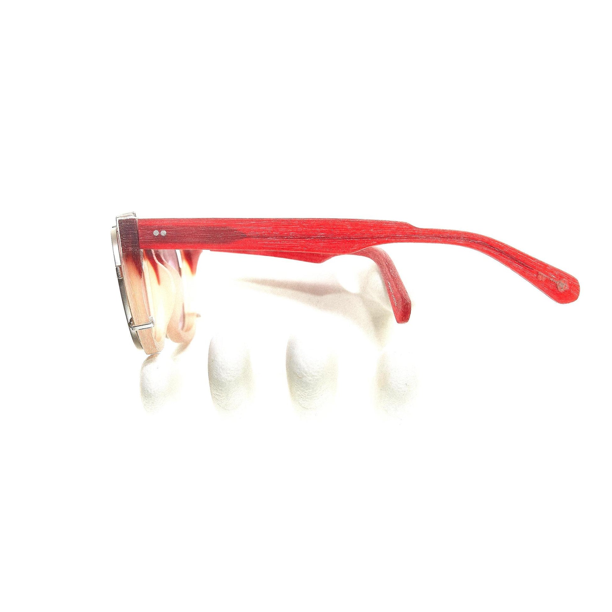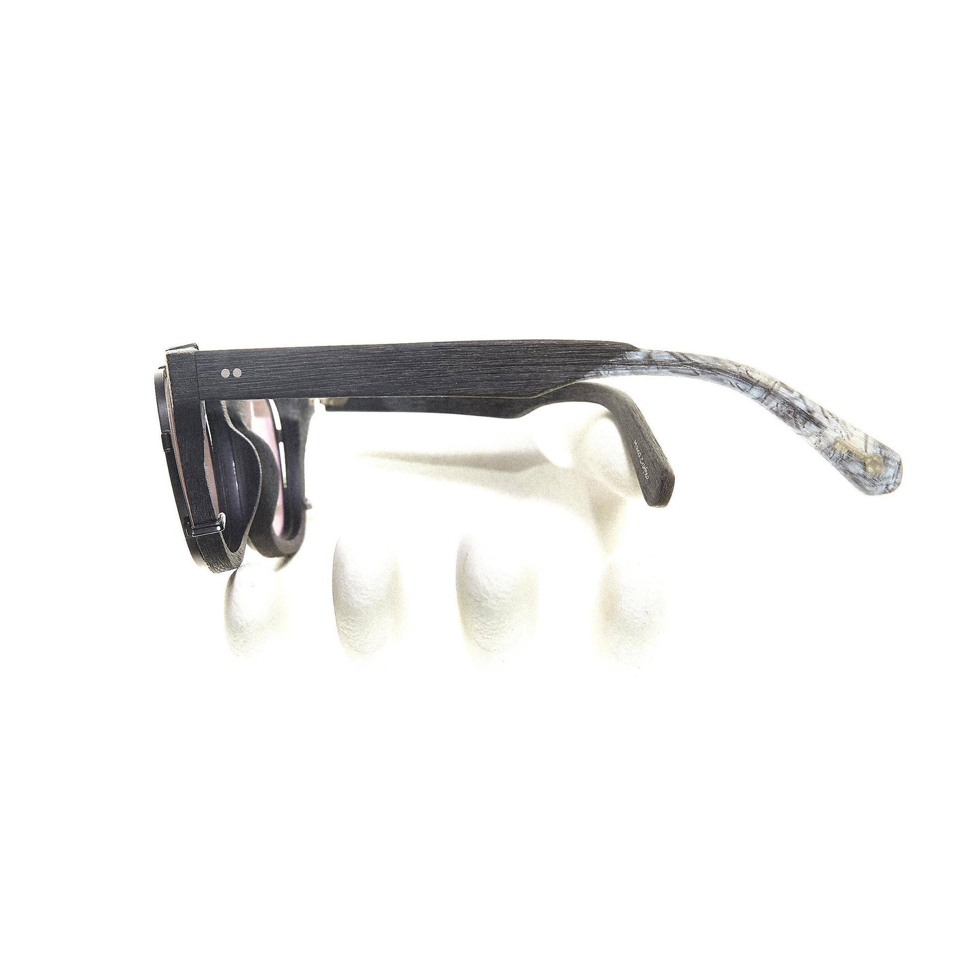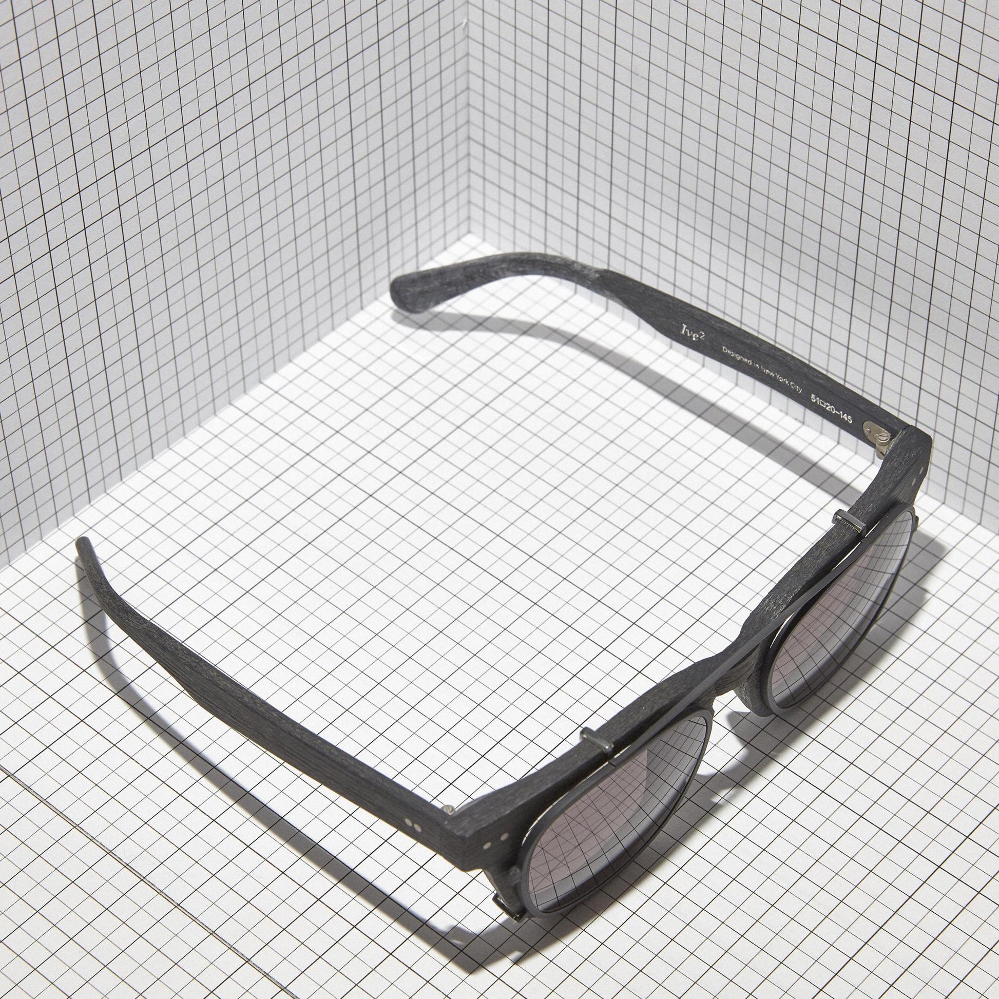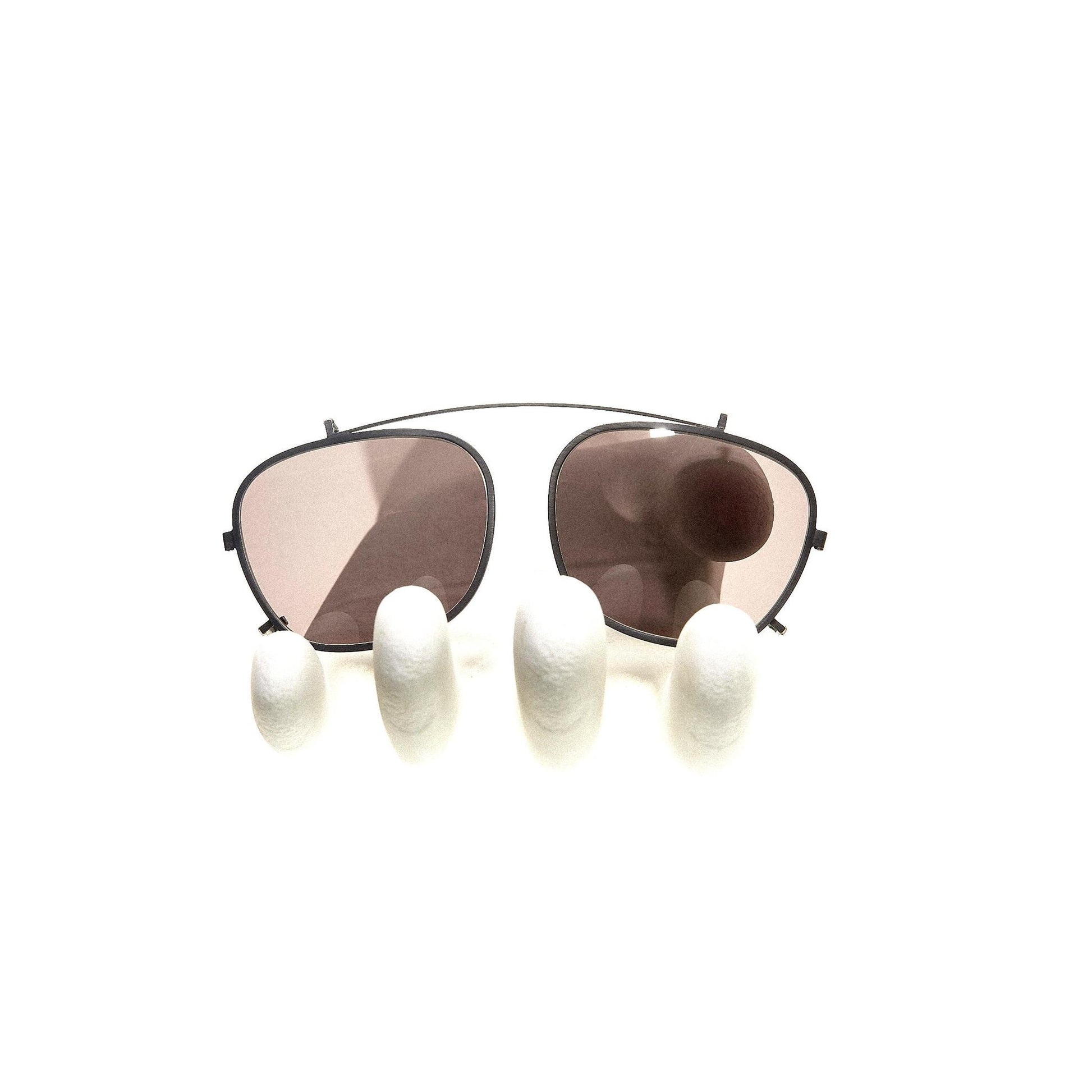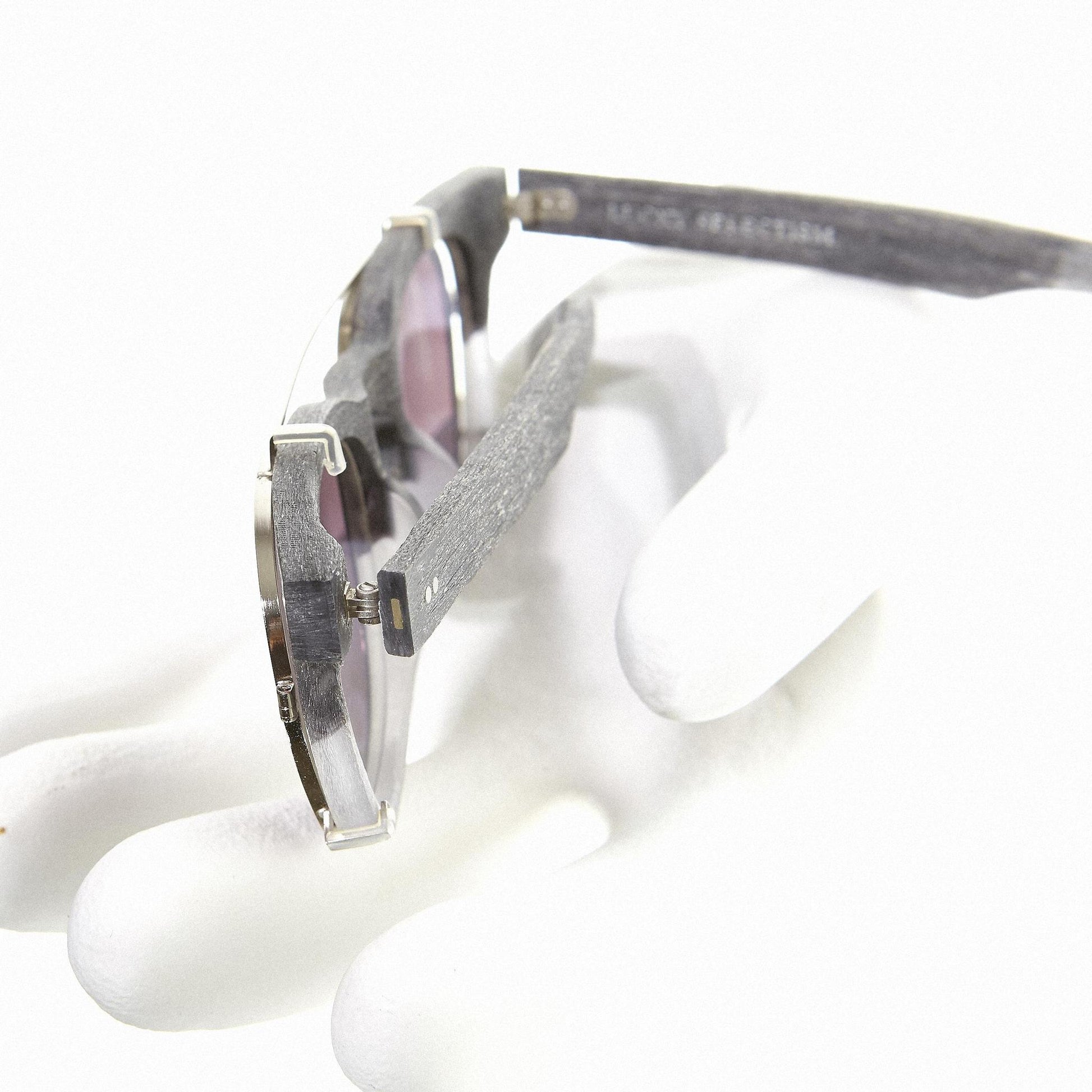 DISCOVER IVE II; Inspired by the 1950’s Golden era, a matte hand-brushed texture frame with a wooden quality touch gives a genderless and yet charismatic look. A flexible stainless clip-on gives a double brow bar silhouette along with a classic keyhole cut bridge. Bold and matte temple supports the profile of wood carving style.