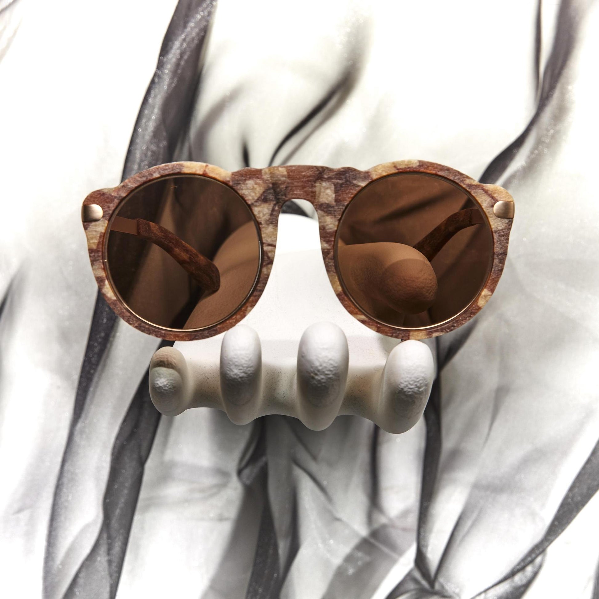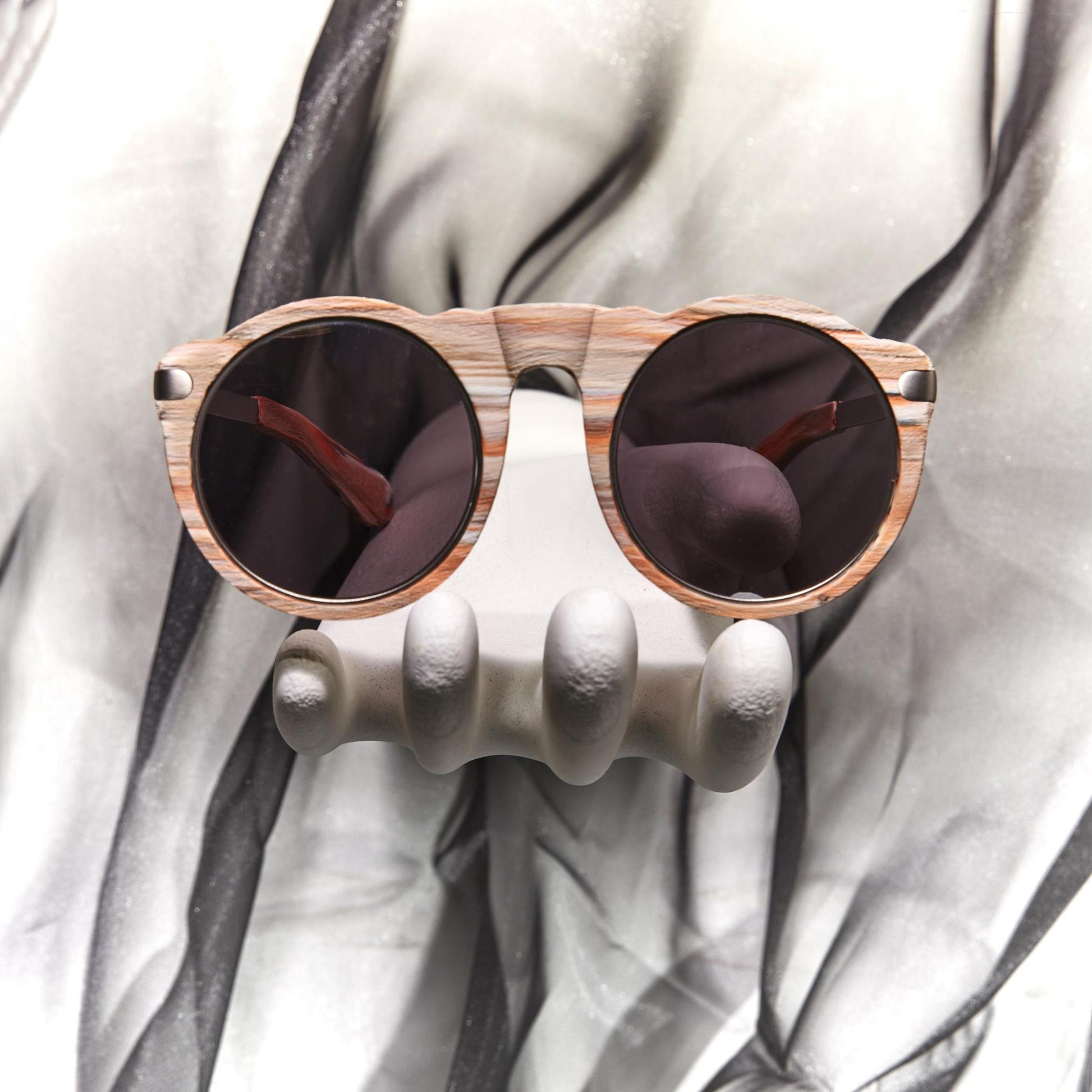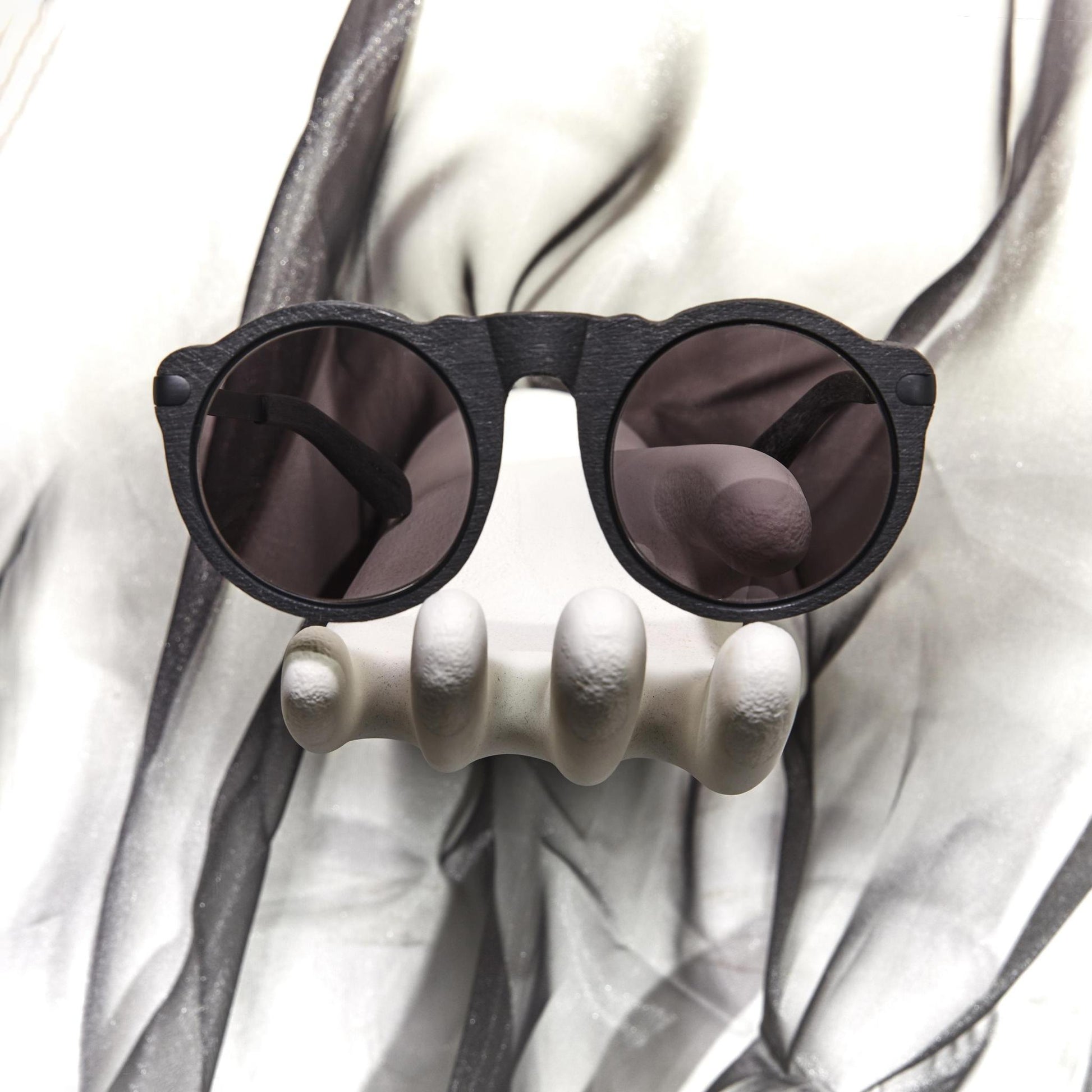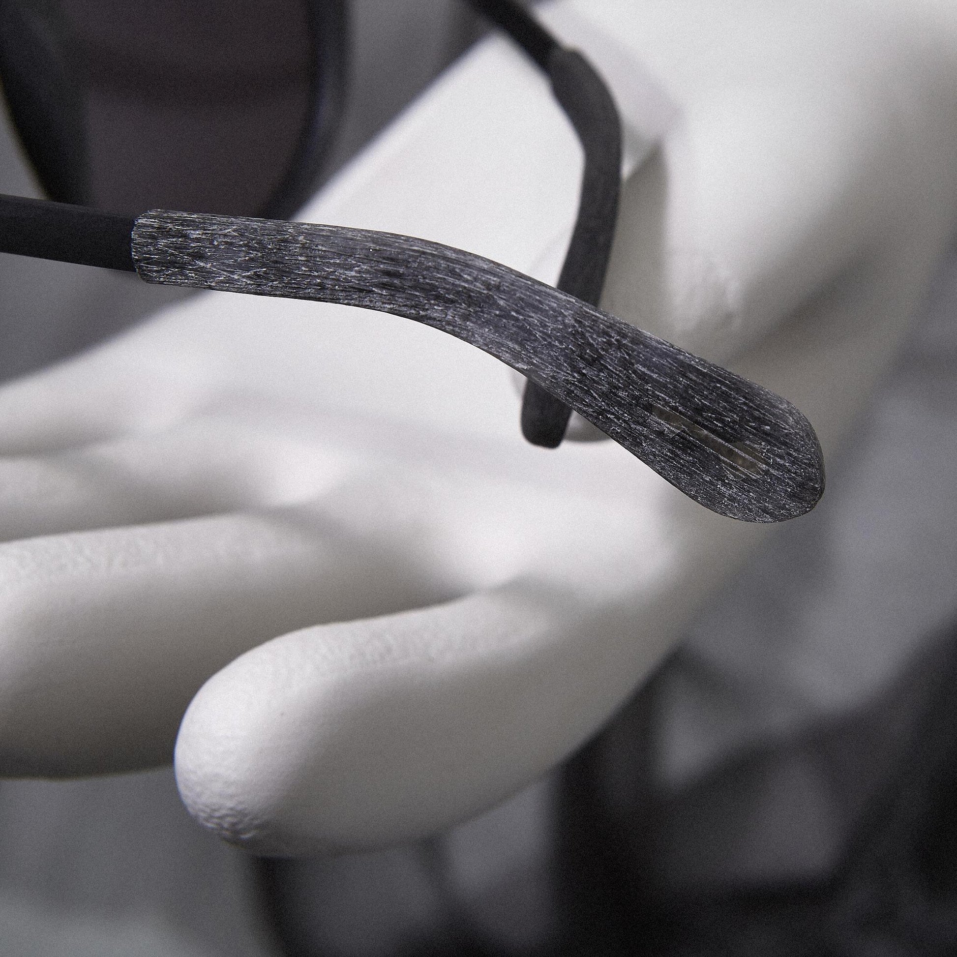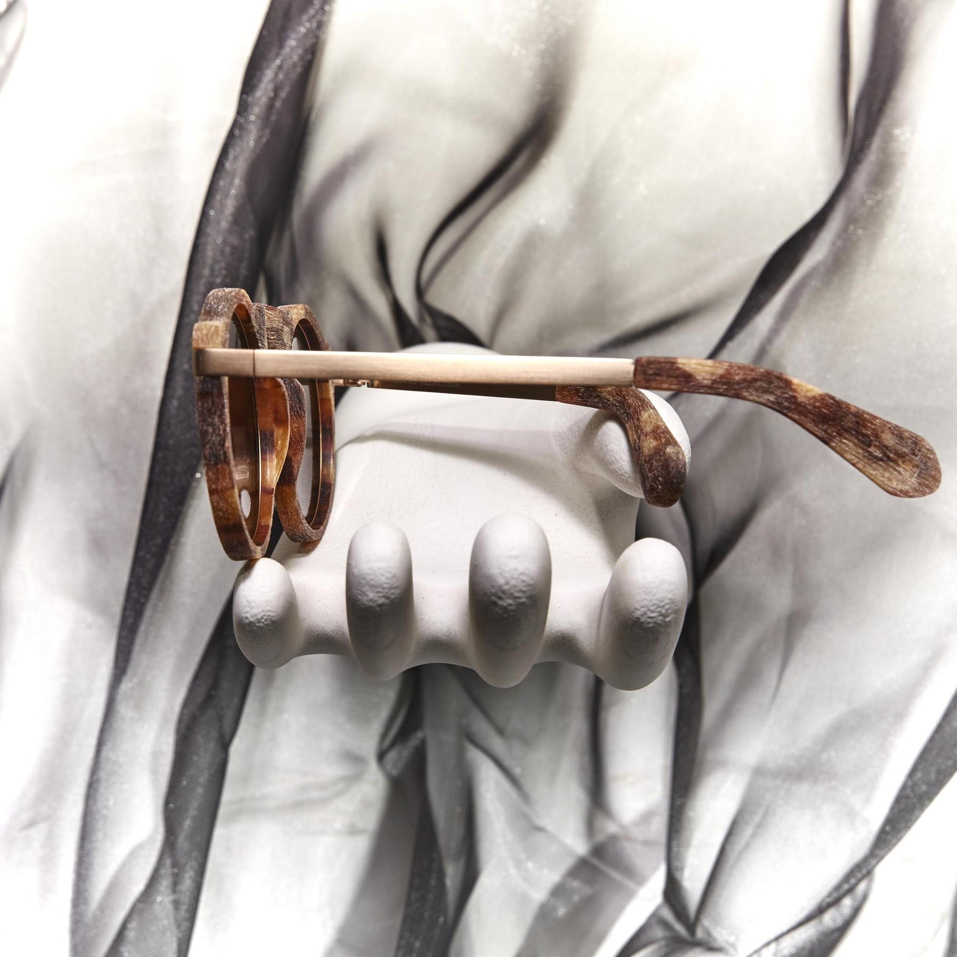 DISCOVER LAVERN; a classic pantos-shaped frame with boldly carved saddle nose bridge transforming the collapsible designed sunglass’s nose bridge shape as a unique design feature. Unconventionally cut elevated brow-bar gives an iconic look while overall matte and bold texture highlight blend effortlessly with thin matte metal temples with hand-brushed texture ends.