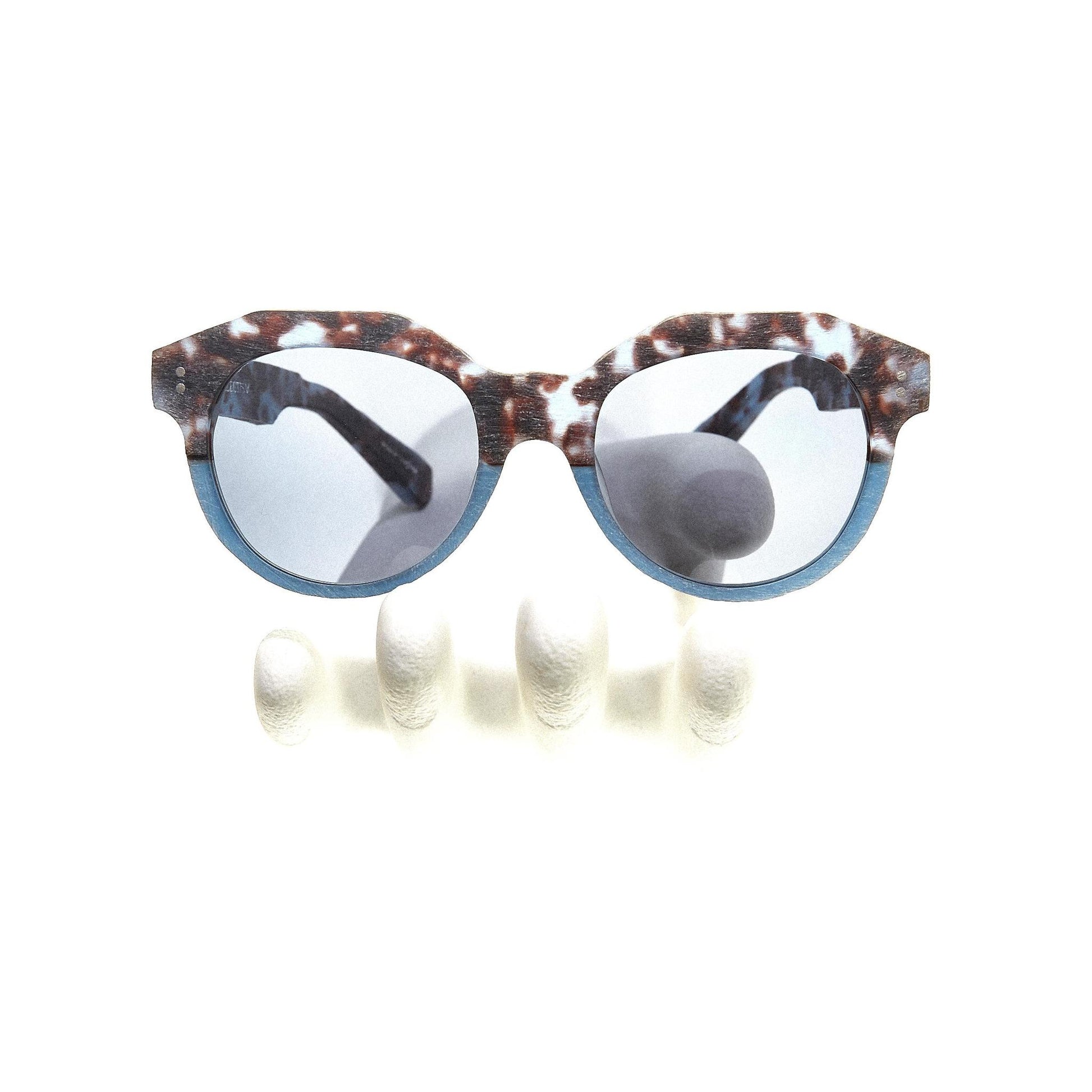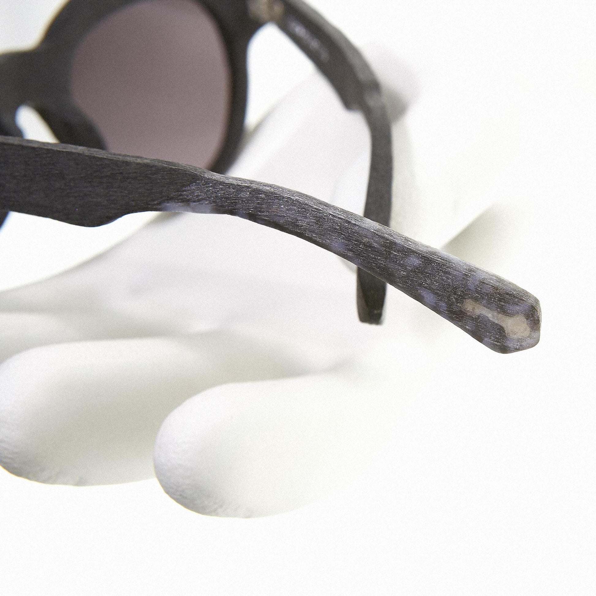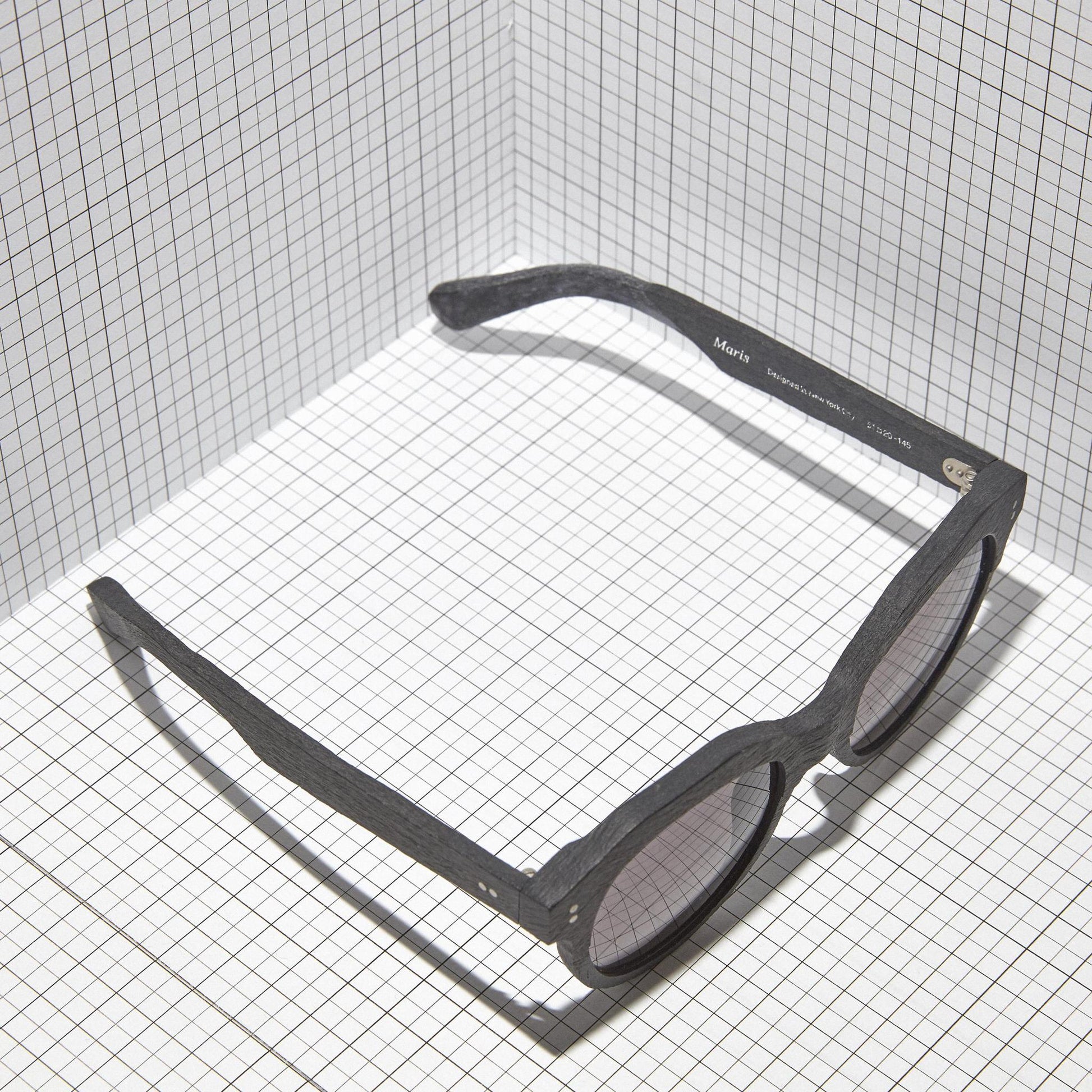 DISCOVER MARIS; two-toned Sunwear with the horizontal half-cut accent inspired by the iconic “crown” silhouette from the 1930s France. Thick, slightly angled rims and the steric bridge gives an edgy twist, accentuating the layering of hand-brushed texture.