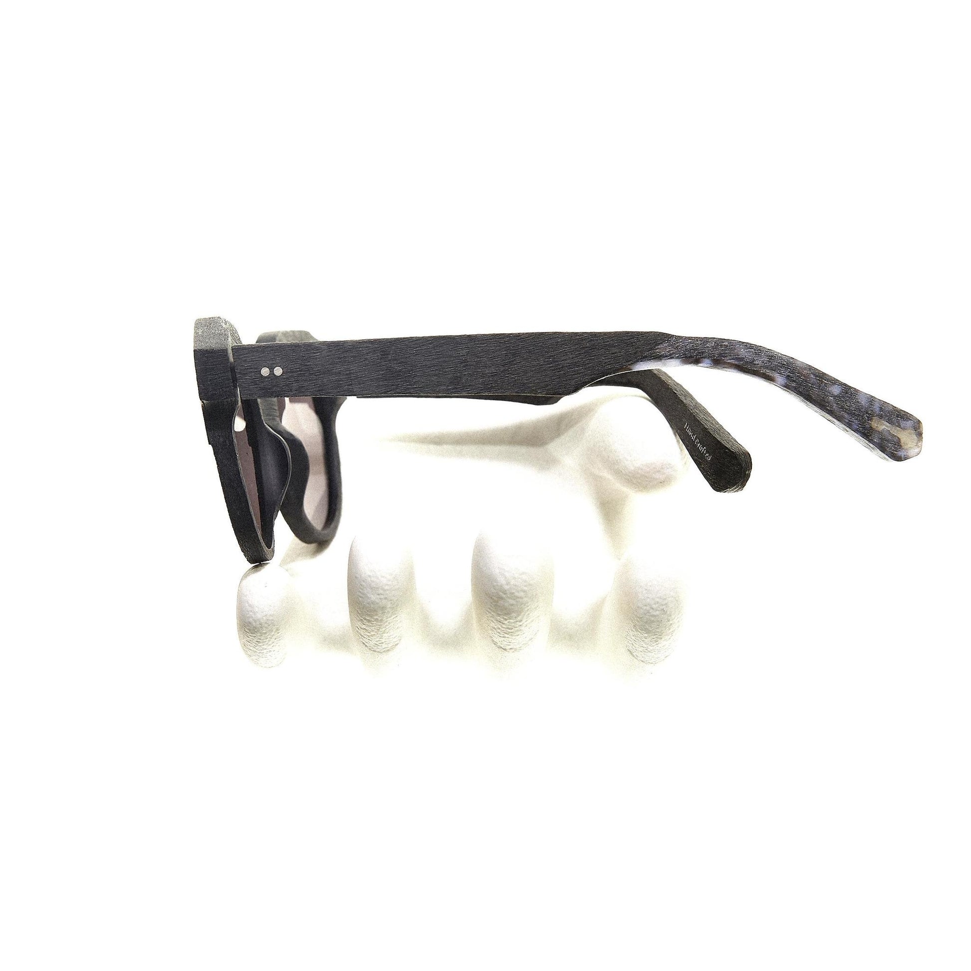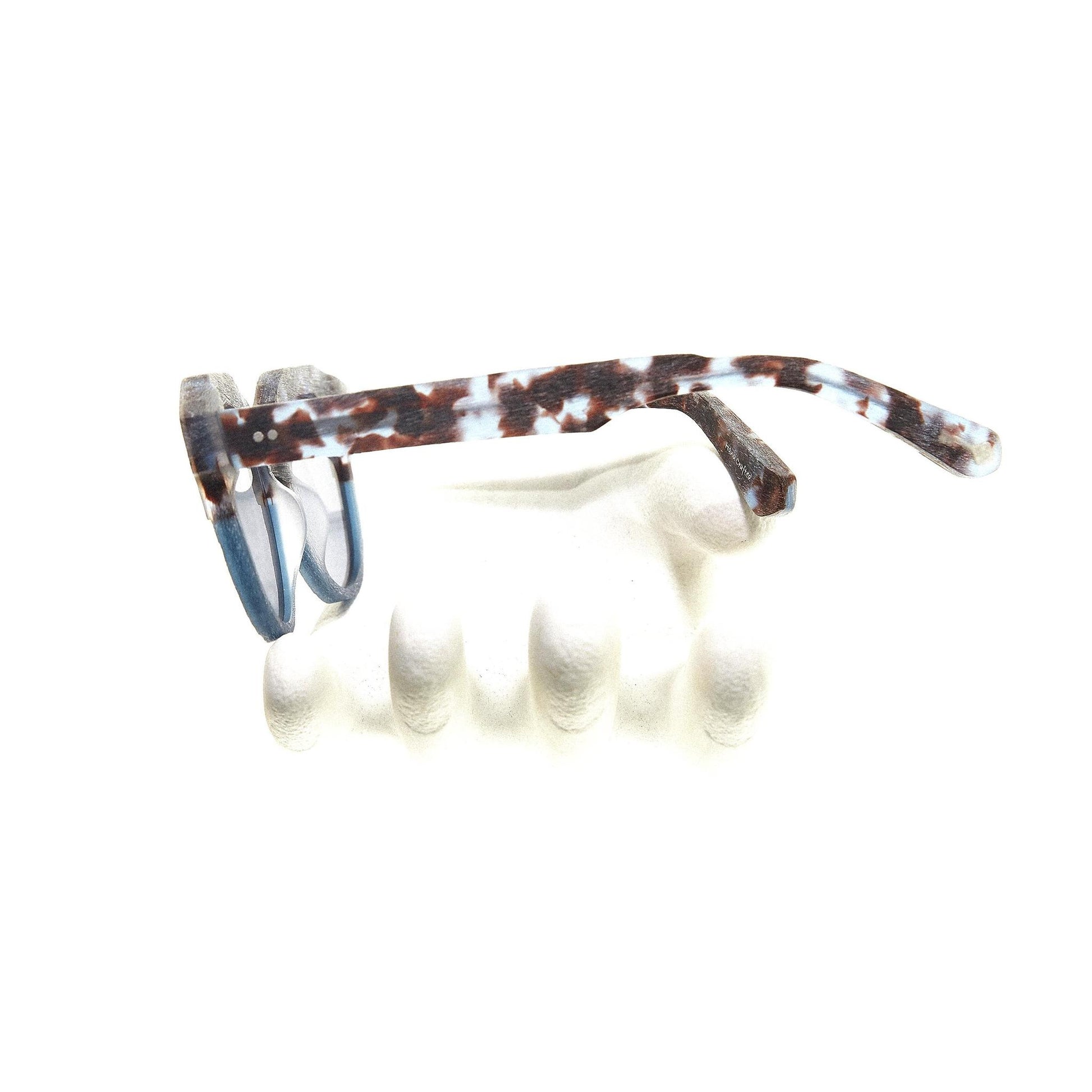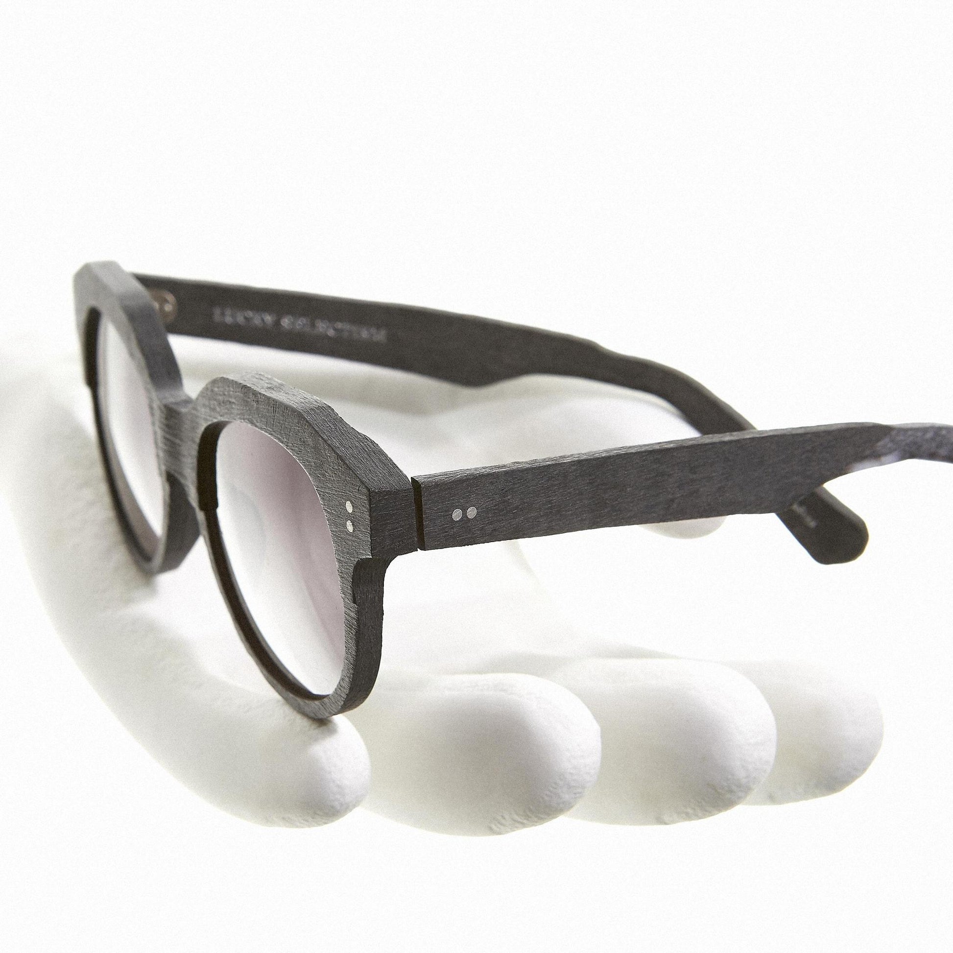 DISCOVER MARIS; two-toned Sunwear with the horizontal half-cut accent inspired by the iconic “crown” silhouette from the 1930s France. Thick, slightly angled rims and the steric bridge gives an edgy twist, accentuating the layering of hand-brushed texture.