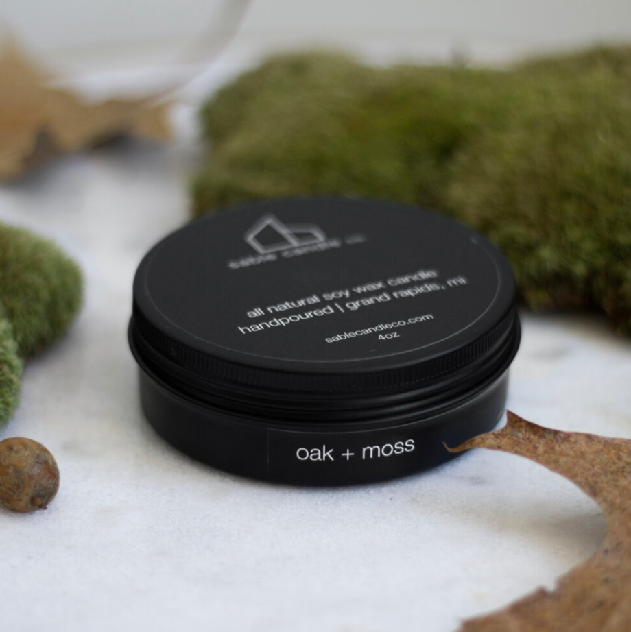 inspired by the dense michigan forest after a fresh rain. oak + moss combines a strong base of earthy cedarwood with rustic oak, soft moss, and light greenery to capture the wonder of adventure.