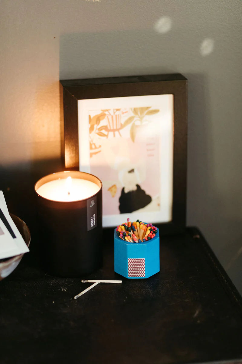 Tenn Prairie Blue Match Holder w/ Striker and Rainbow Matches