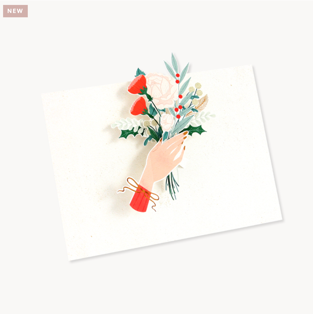 Our Pure Alchemy Collection features cheeky salutations and pop-ups mixed with intricate laser-cutting. Hands come together to exchange winter sprigs and warm wishes.